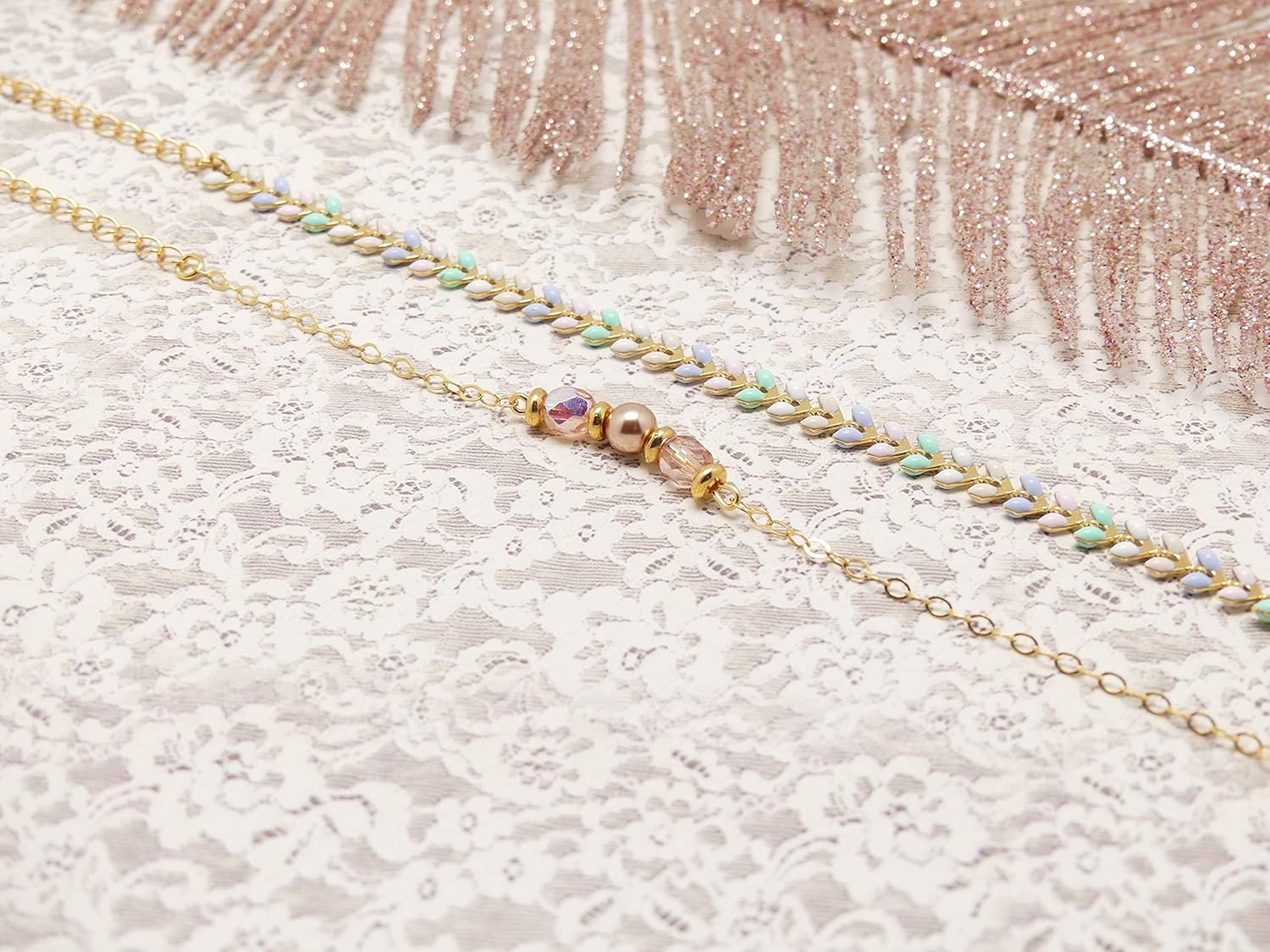 Be the first to review “ART DECO wedding bracelet powder pink green white pastel gold gold filled personalized gifts ceremony wedding accessory bride guests bridesmaid witness”