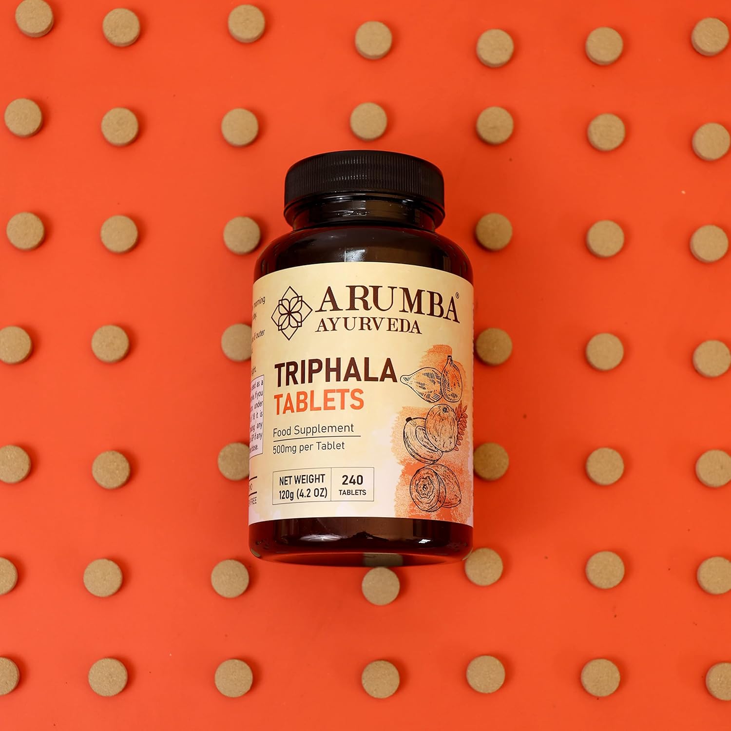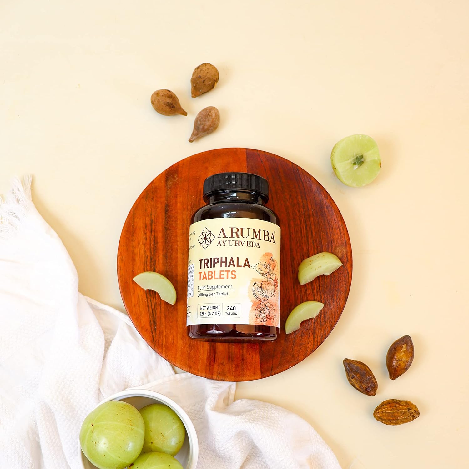 Arumba Ayurveda Triphala Tablets 240 Tablets, 500 mg per Tablet, Made with Pure Amalaki Powder, Haritaki Powder, Bibhitaki Powder