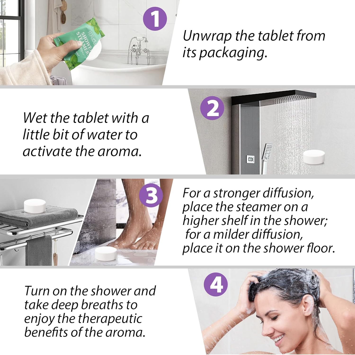 【Enjoy A Home Spa】With these Shower Bombs, you can have a spa-like experience at home without wasting time or money on going to a spa center. All you need to do is put a shower steamer on the shower floor, let it get a little wet from the water, and it will release a nice scent. Breathe slowly and deeply and enjoy the moment.