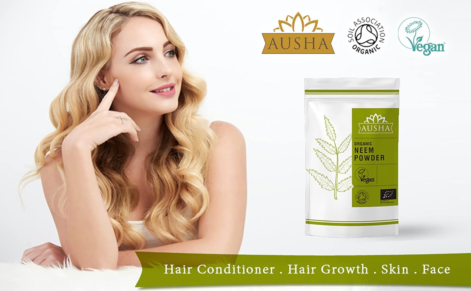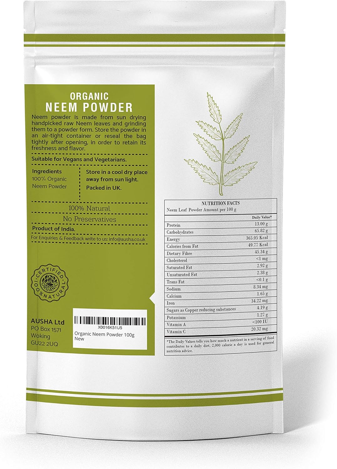 Ausha Organic Neem Powder 100g | Immunity,Digestion, Cleanse| Hair Growth, Dandruff, Skin Care, Oral Health – Certified Organic by Soil Association