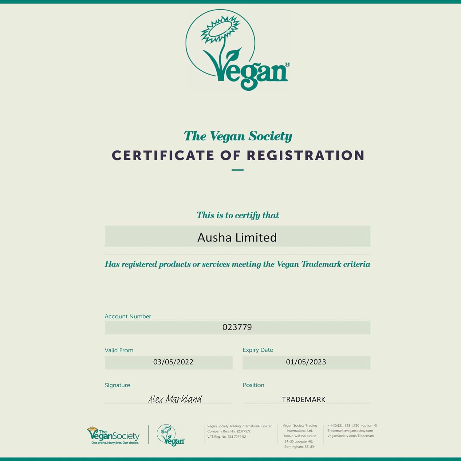 All products are certified as Vegan by Vegan Society. Suitable for Vegans