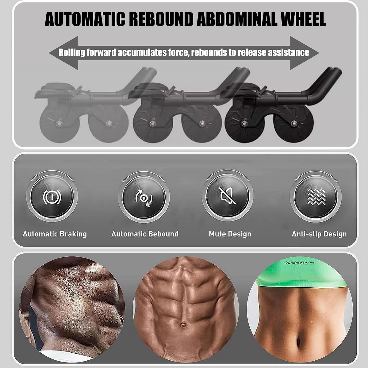 Automatic Rebound Abdominal Wheel, Ab Roller Exercise Wheel with Elbow Support, Abdominal Exercise Wheel, Core Exercise Equipment for Fitness Home Gym Workout – Mute Roller, Dual Wheel Design