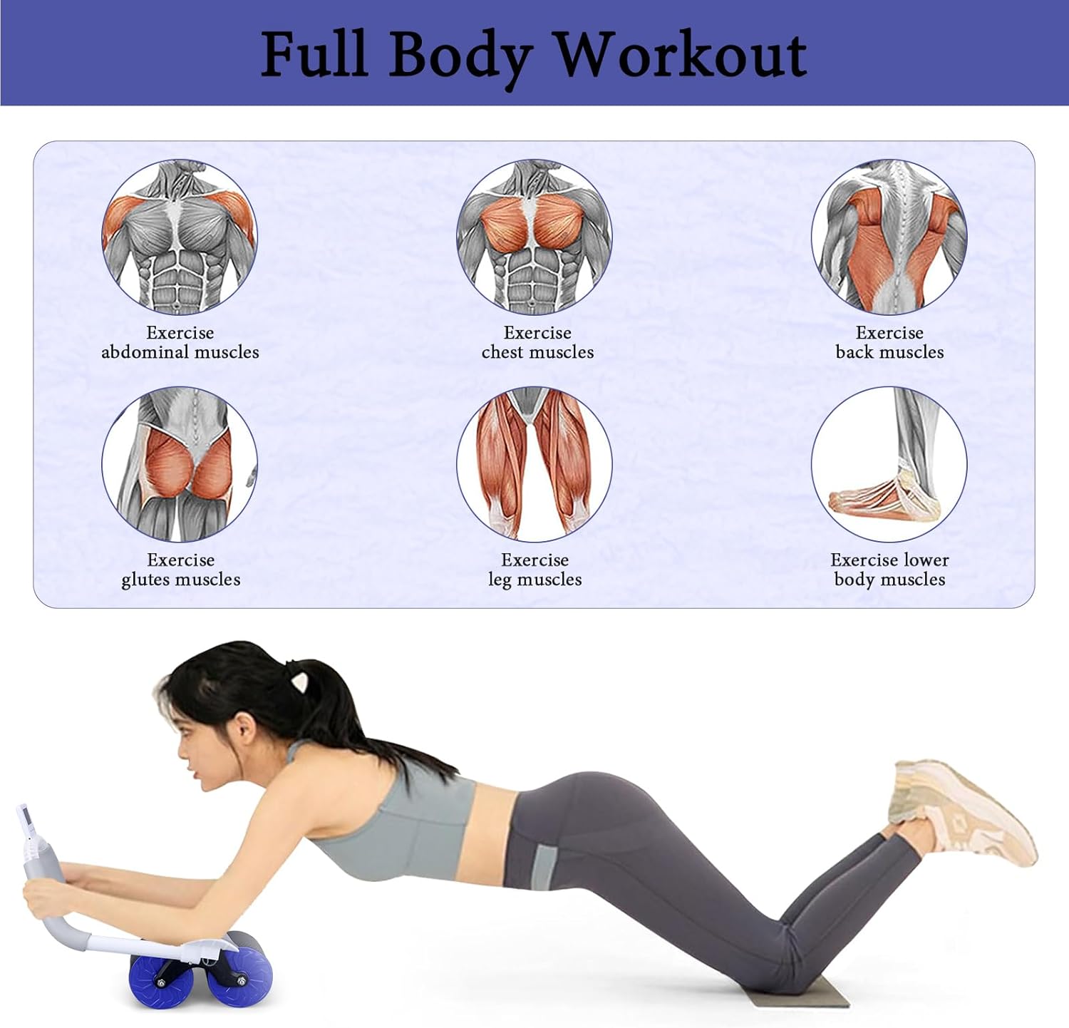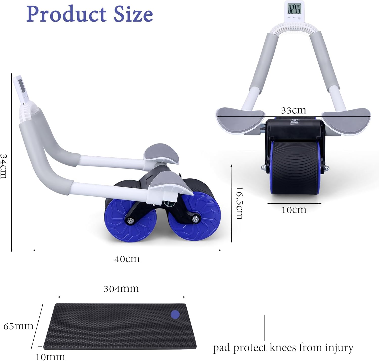Automatic Rebound Abdominal Wheel, Ab Roller Wheel with Timer Elbow Support for Beginners, Exercise Double Wheel with Knee Mat Holder for Body Fitness Strength Training Home Gym