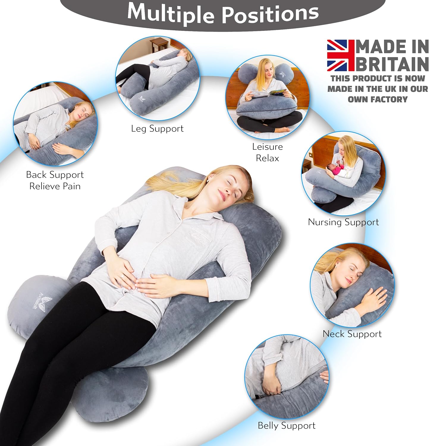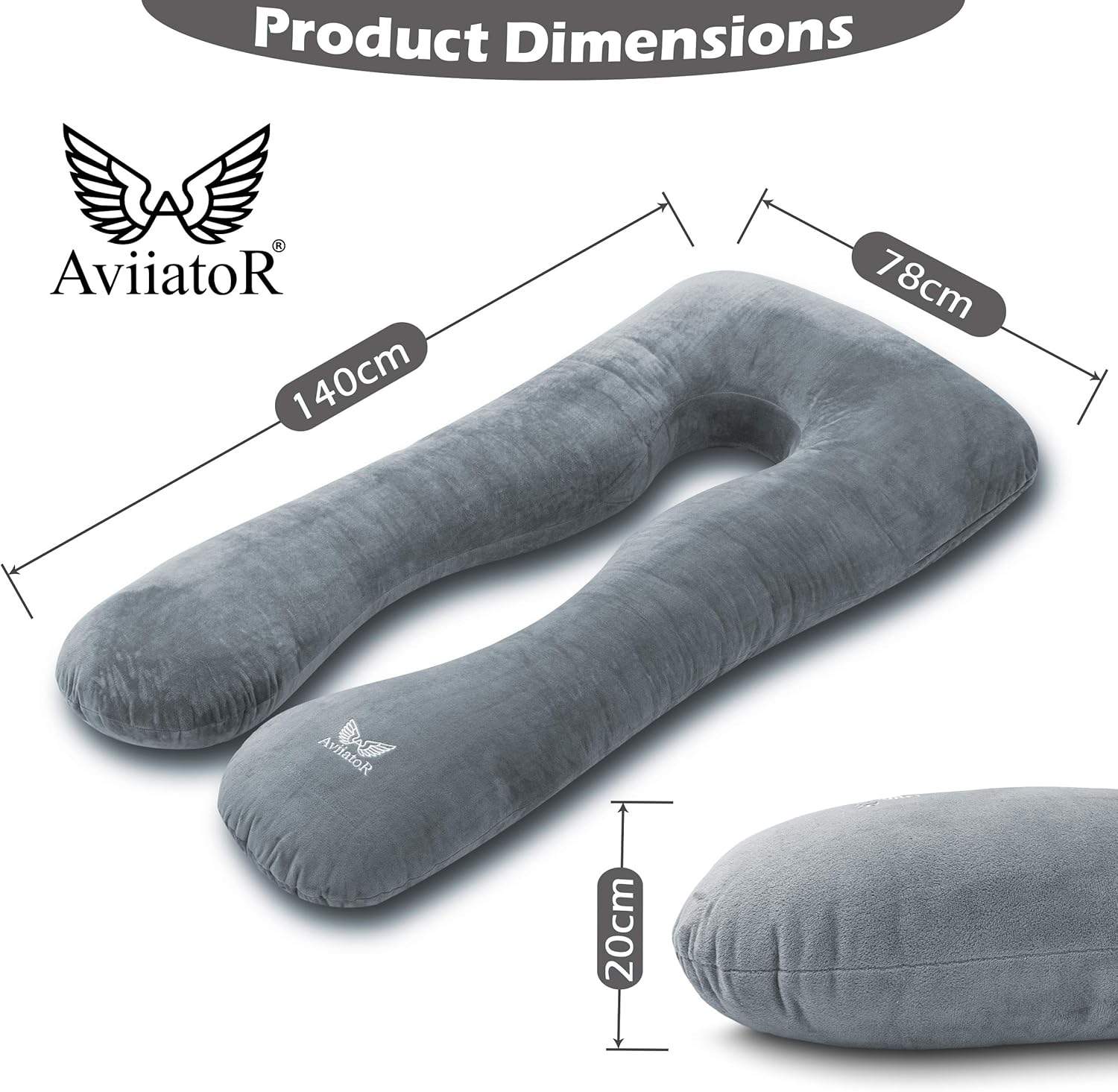 AviiatoR® Pregnancy Pillow For Side Sleeping, Extra Filled Large U-Shape Full Body Pillow Soft Velvet for Maternity, Nursing, Feeding, Arm, Back, Knee, Belly Wedge Support (140cm x 78cm x 20cm) Grey
