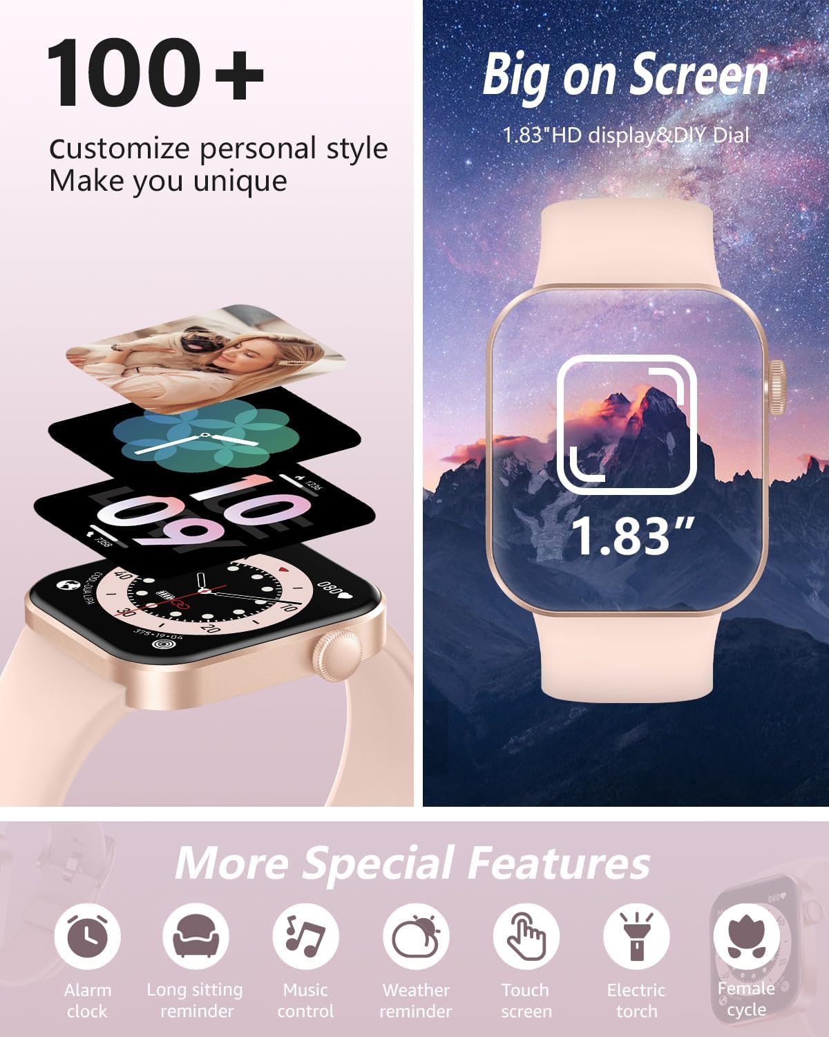 💎 1.85 Inches Full Touch Screen and 100+ Custom Dial: The AZTTKIA watch has a 1.85 inches full touch LCD screen, presenting a premium image quality for excellent visual effects. Whether it is under strong light or in a dim environment, the screen brightness is adjustable, allowing you to easily read the time and data. At the same time, you can freely choose the 100+ dial style through the mobile application or choose your phone photo to display beautiful scenery and show your personality.