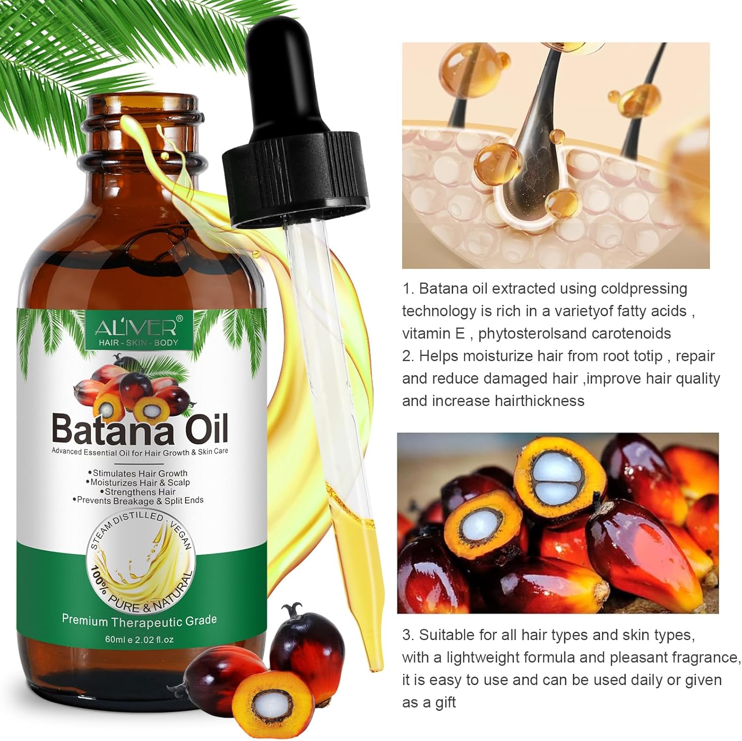Batana Oil for Hair Growth, Pure Organic Natural and Cold Pressed Hair Oil for Hydrating & Repairing Dry, Damaged Hair Skin Care, Face, Body