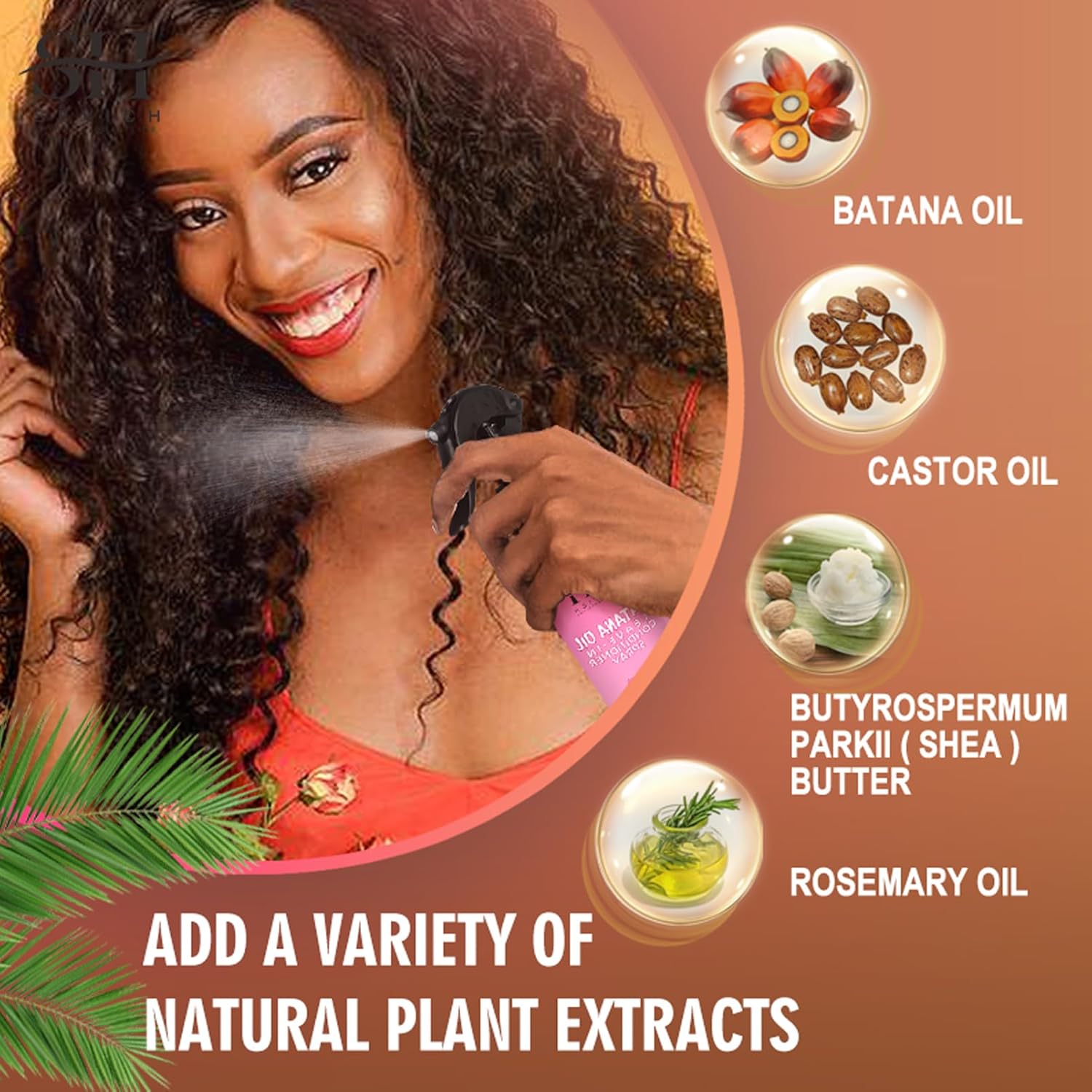 【Nourishes the Scalp】Infused with Bata-na Oil, our Leave-In Conditioner Spray deeply hydrates and moisturizes hair. Its penetrating formula repairs damage and restores hair health, leaving locks silky soft and healthy-looking.