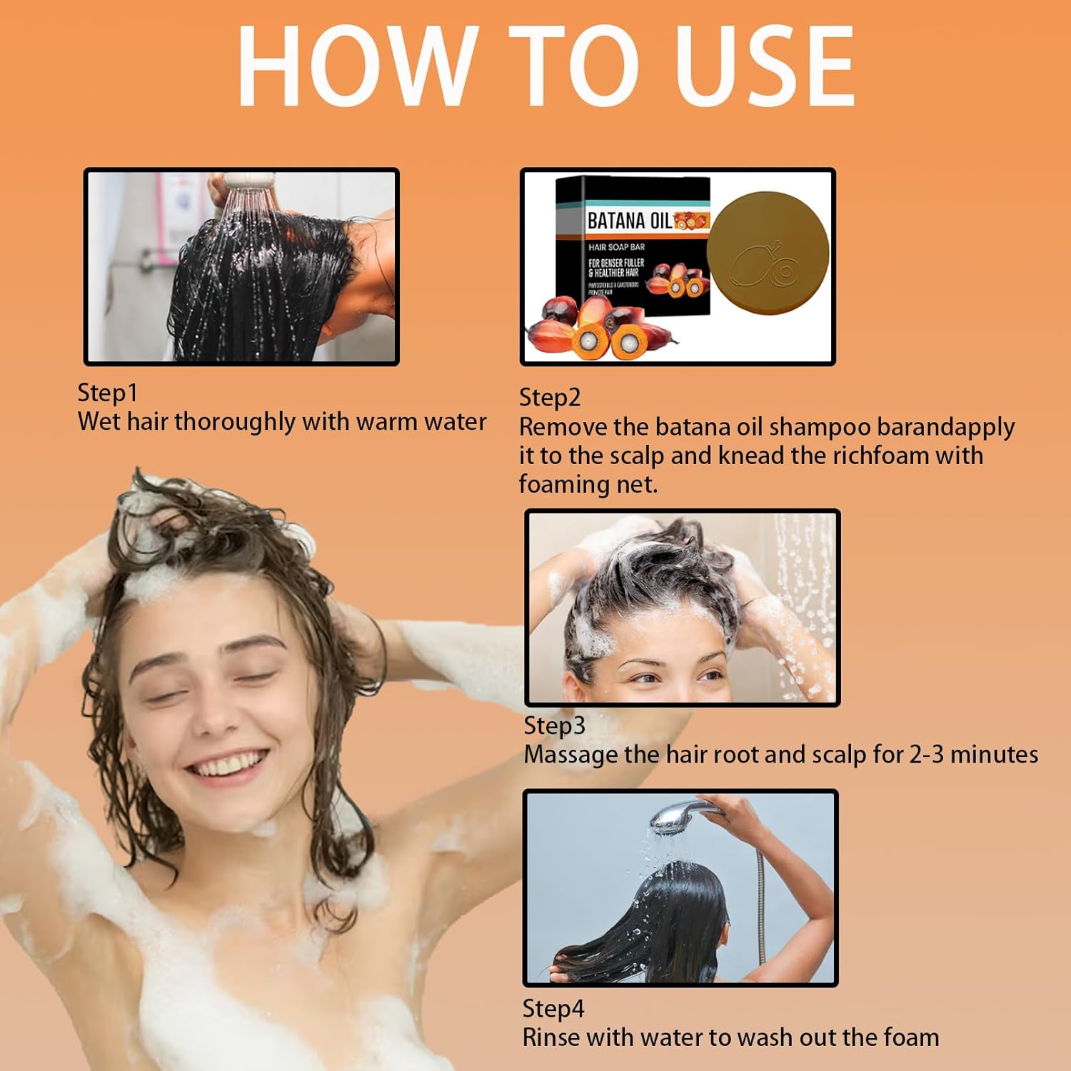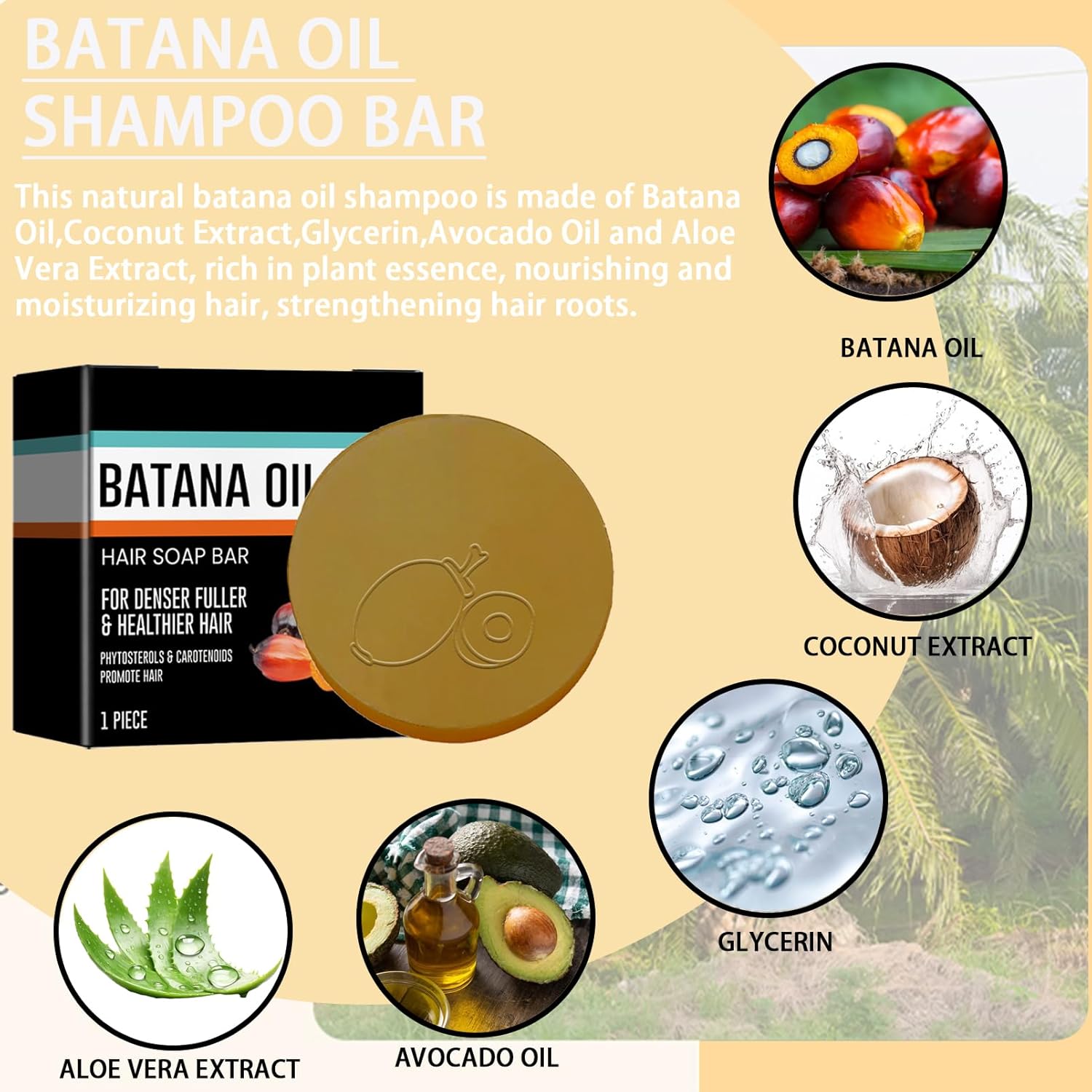 【Batana Oil Shampoo Bar】Experience the power of batana oil for hair growth. The active ingredients in the solid shampoo can effectively penetrate the scalp, promote the growth of hair cells, and make the hair roots stronger.