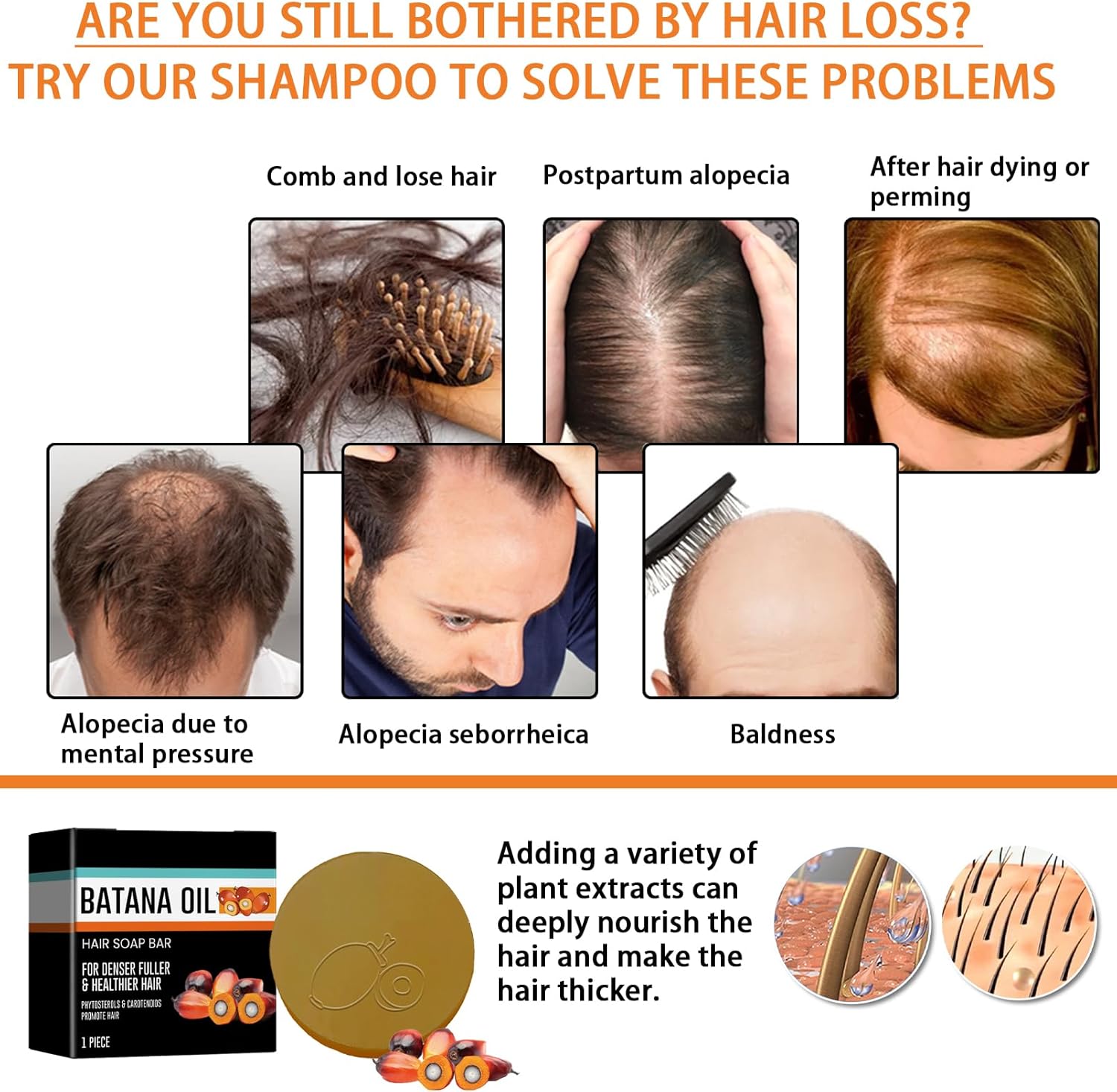 【Hair Growth & Anti-Hair Loss Solid Shampoo】The anti hair loss shampoo for women/men is helping to prevent hair loss. Strengthen each hair follicle and root with batana oil, the hair growth shampoo helps prevent hair loss, promoting healthier and stronger hair with improved texture for both men and women.