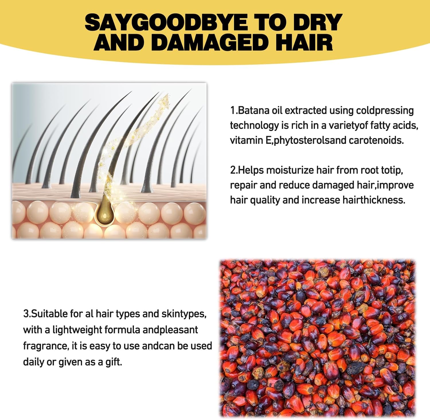 Batana Oil,Batana Oil for Hair Growth,100% Natural Batana Oil,Enhances Natural Hair Growth,Prevent Hair Loss and Split Ends,Thicken Hair,Repair Damaged Hair for Men & Women