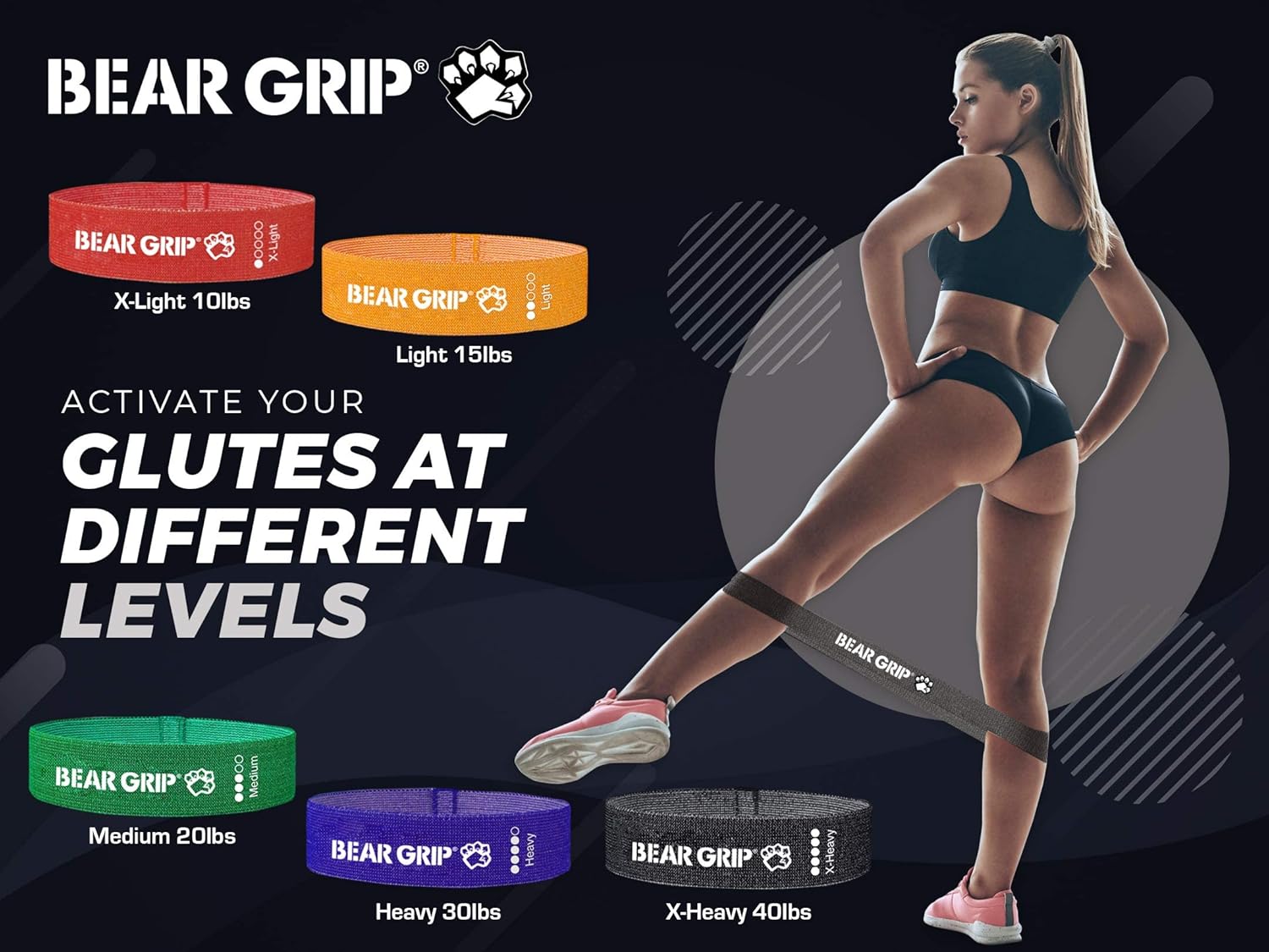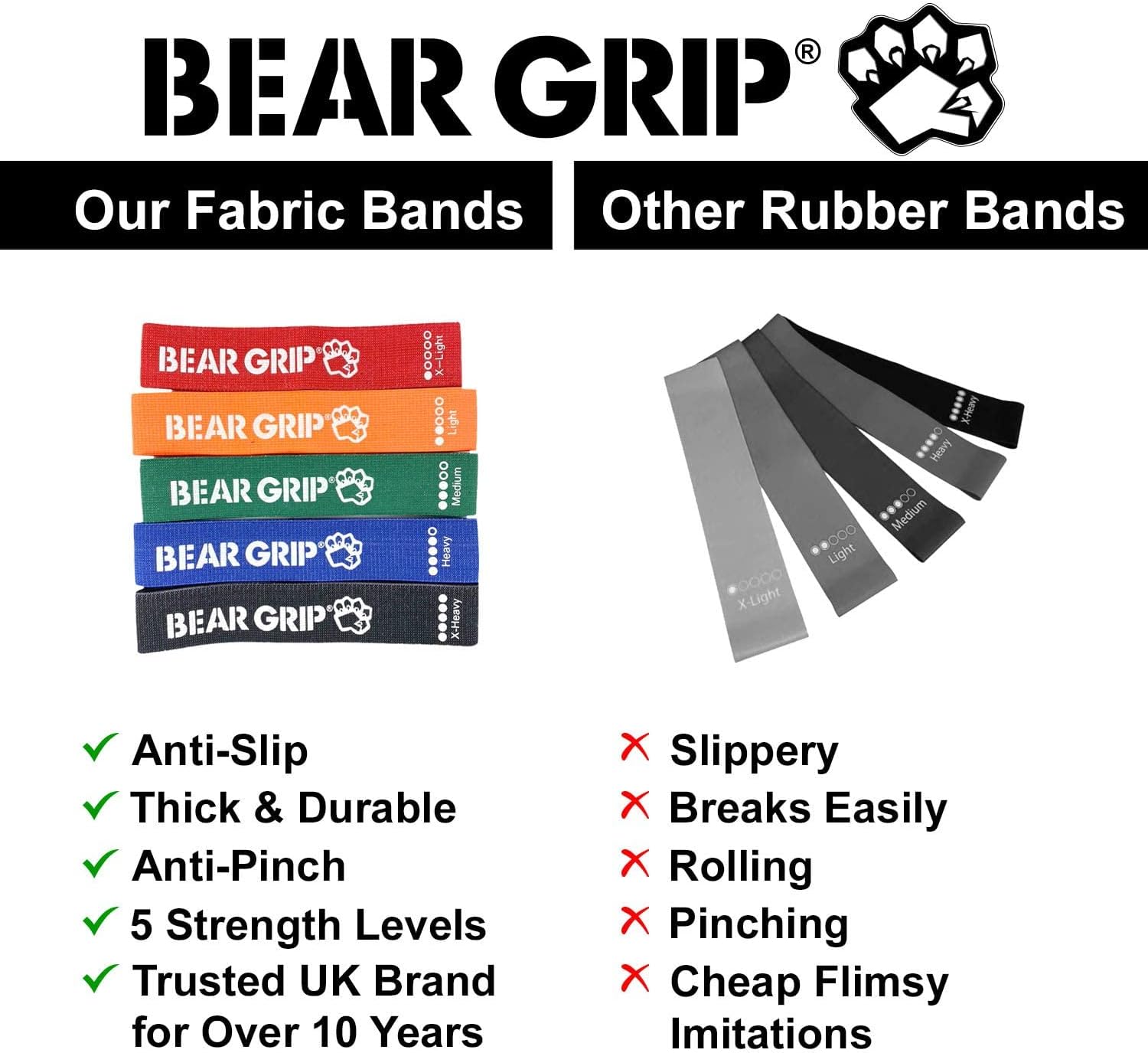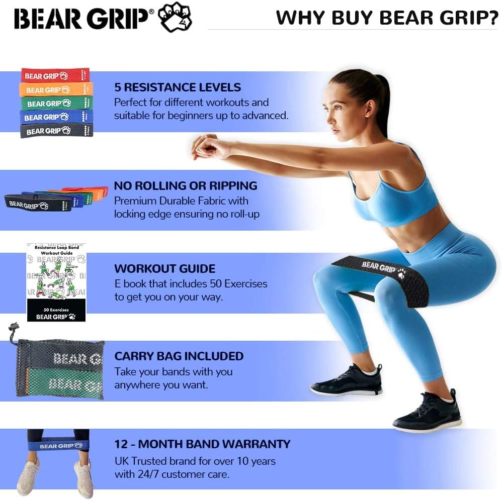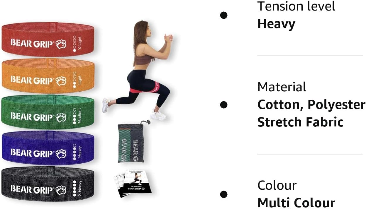 Bear Grip Fabric Exercise Hip Band Circle – Legs, Glutes and Arms Exercise Band with 5 different Resistance