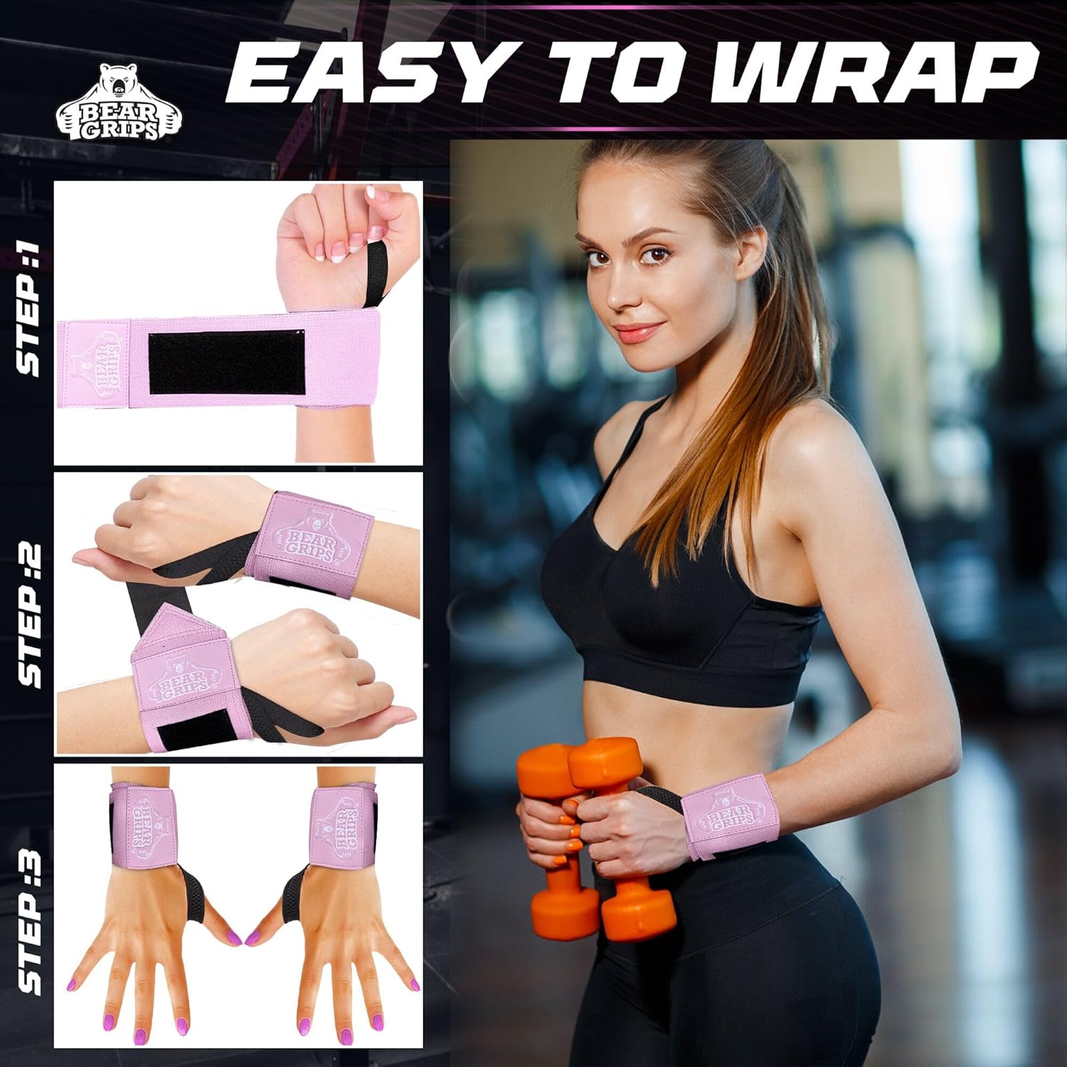 Elevate your weightlifting game with 𝐁𝐞𝐚𝐫 𝐆𝐫𝐢𝐩𝐬 Extra Strength wrist wraps for weightlifting. These deadlift straps offer essential wrist support for both men and women, alleviating wrist pain and enabling you to lift more weight effectively. Featuring two built-in compression protectors, our gym set tennis wrist support provides unparalleled security during workouts. Wrist braces are durably constructed with quad stitching, a strong closure system, and a sturdy thumb loop for a secure fit. These versatile dead lifting wrist straps are perfect for weightlifting, powerlifting, cross fitness, WODs, and calisthenics, allowing you to push your limits and customize your support. What sets these wraps apart is the presence of four durable elastic bands inside, offering optimal wrist support and flexibility up to 45 degrees without resistance. This makes wrist wraps for working out ideal for bodybuilders, powerlifters, and those recovering from injuries. By positioning your wrists at optimal angles, our gym wrist support wrap prevents pain and injuries during exercises like bench press and shoulder press, ultimately leading to faster gains and recovery. Upgrade your lifting experience with our wrist wraps for men and women and unlock your full potential.