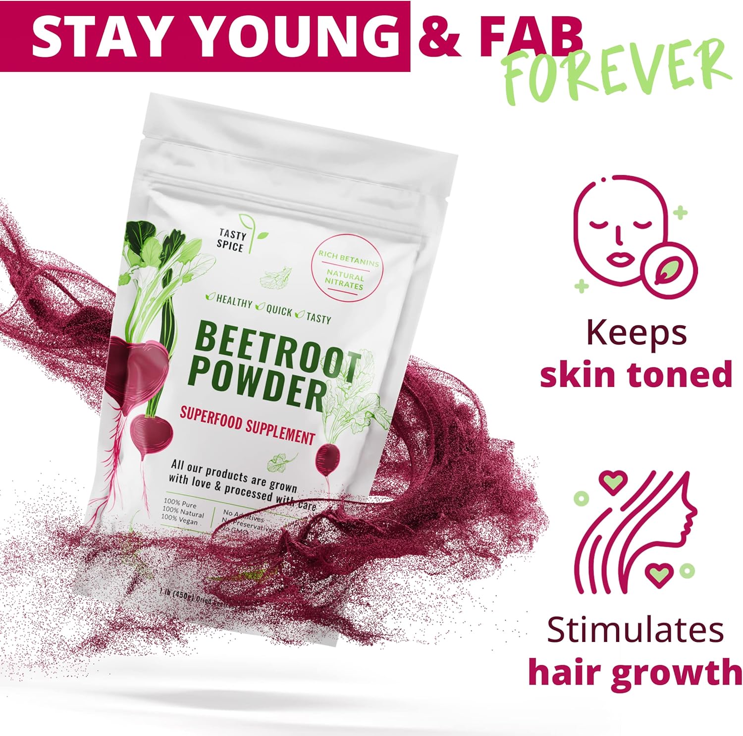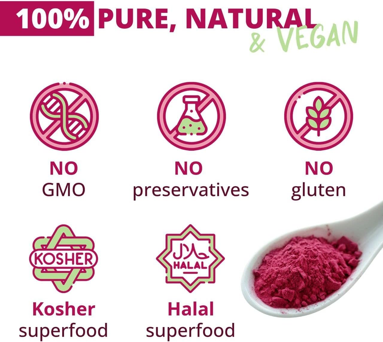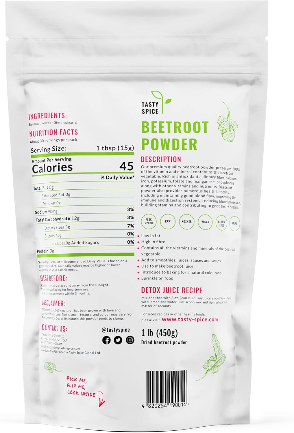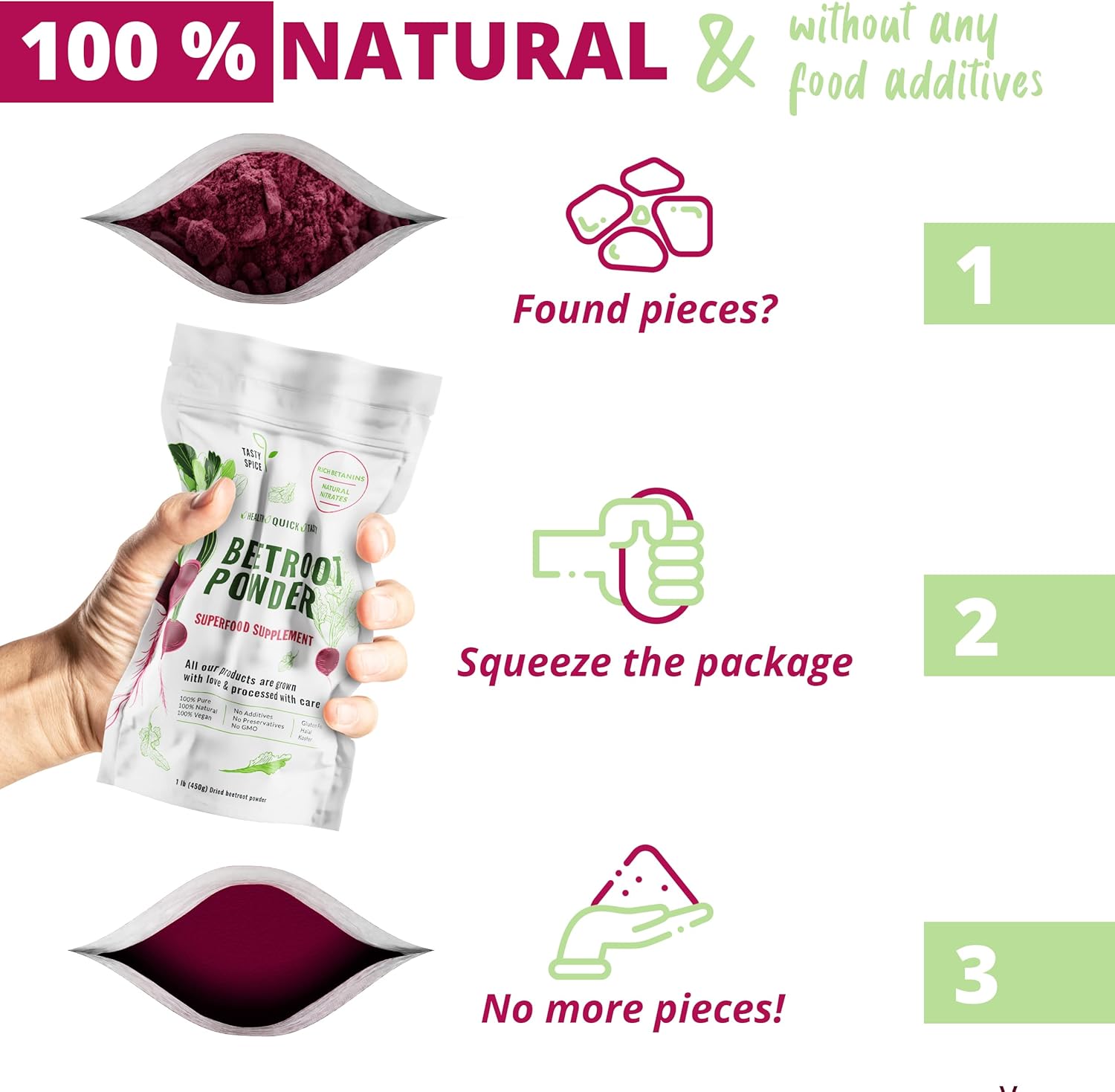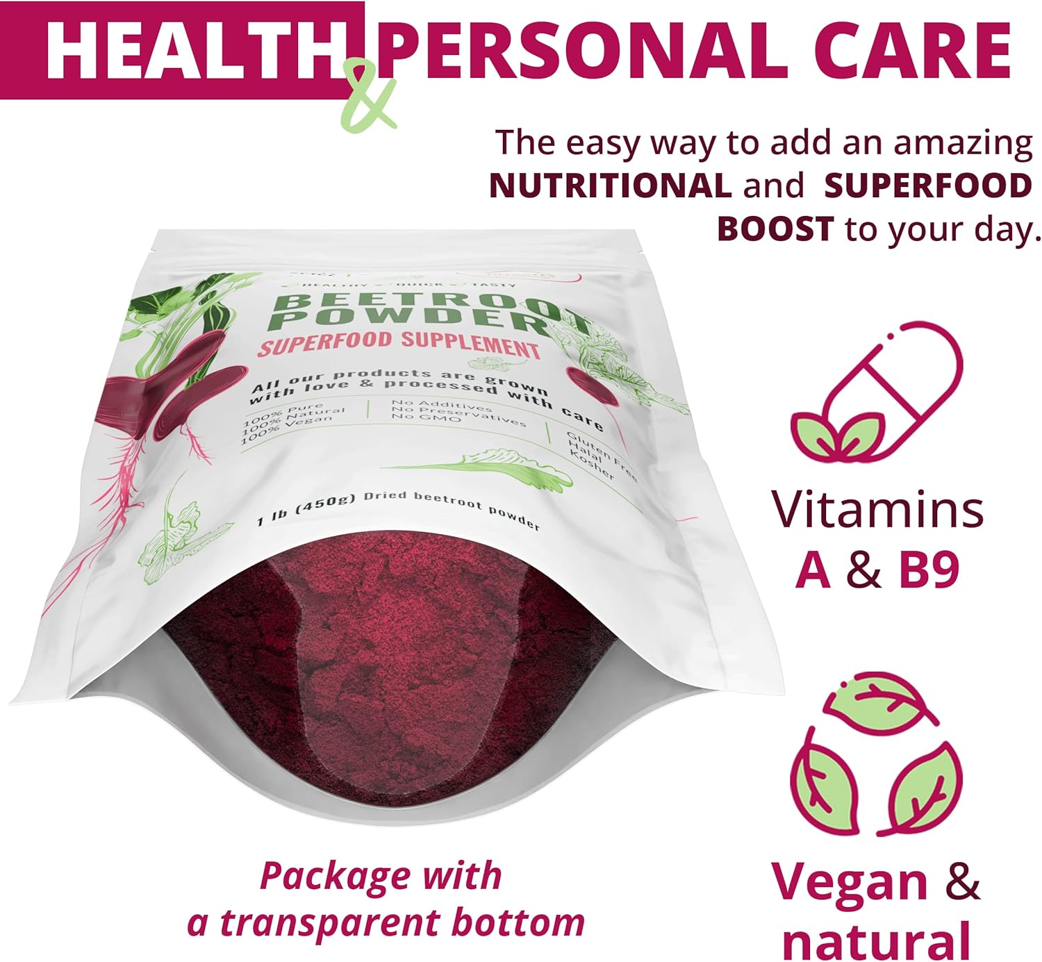 Beetroot Powder (450g), Non Additives & Preservatives, Red Superfood for Healthy Heart, Nitric Oxide Booster, Circulation and Stamina Increasing, Non GMO, Vegan (450g)