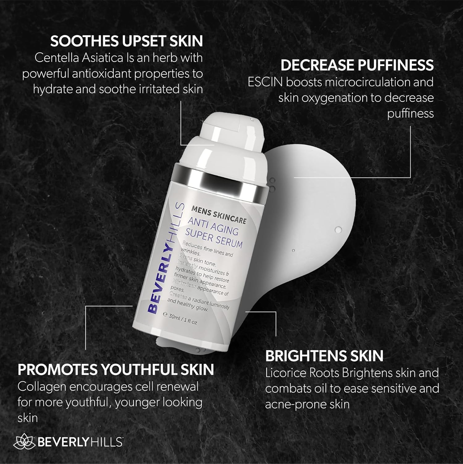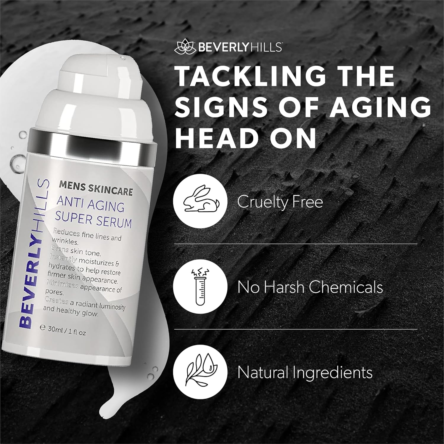 Beverly Hills Mens Anti Aging Facial Serums for Wrinkles, Dry Skin, Pores & Uneven Skin | Face Serums for Anti Aging, Hydration of Skin & Collagen Boost, 1Fl. Oz, Lasts for 60 Days Supply