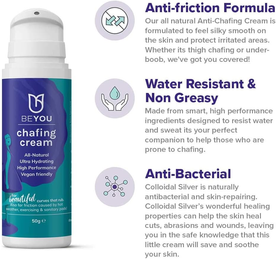 BeYou Anti-Chafing Cream | All Natural Ingredients | Chub Rub | Vegan Friendly | Antibacterial | Water Resistant Anti-Chafing Cream|