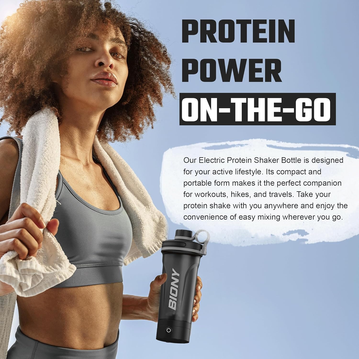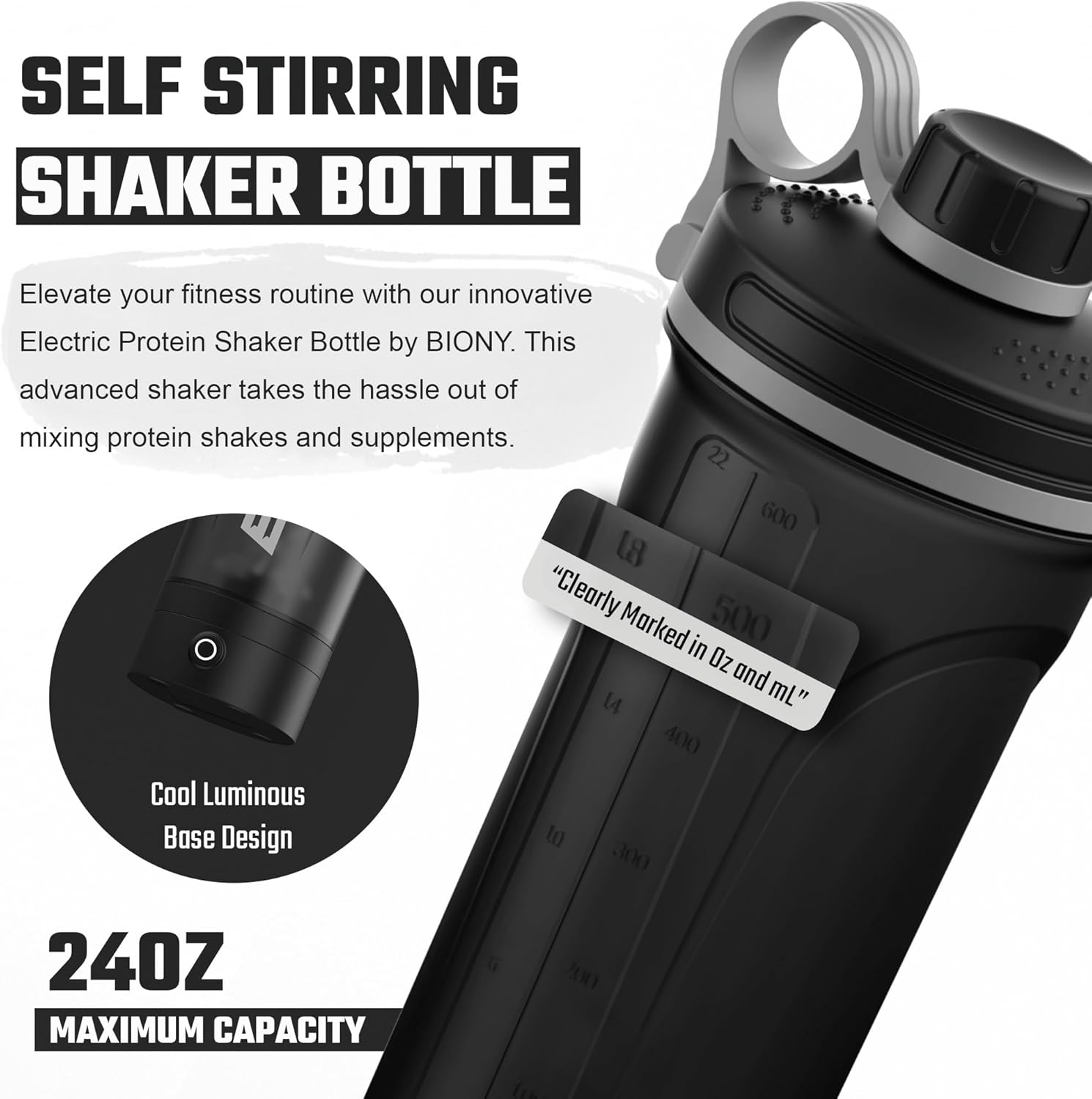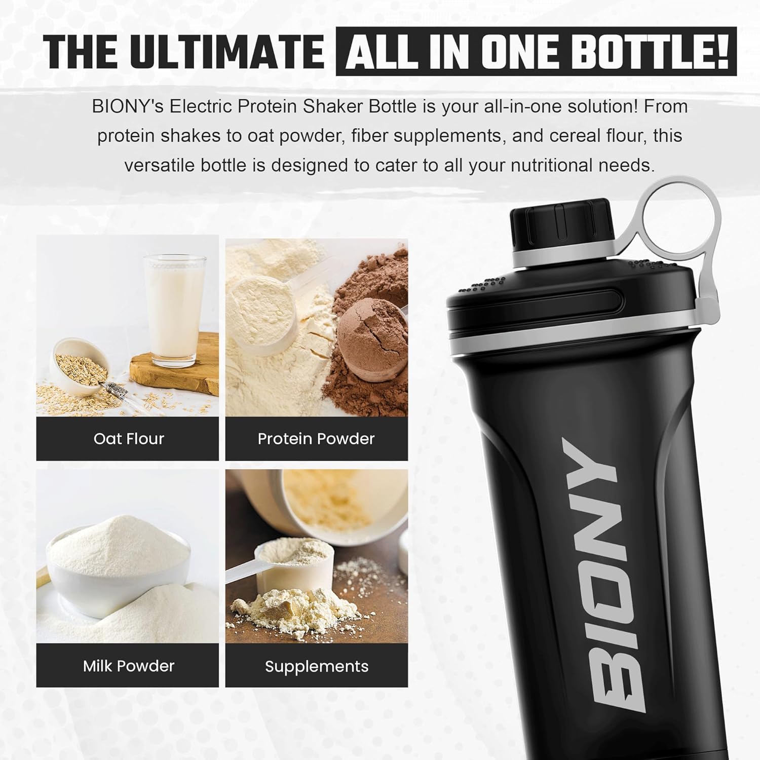 BIONY Electric Shaker Bottle – Automatic Protein Shaker Bottle For Shakes, Smoothie, Meal Replacement Drink – Zero-BPA, Leakproof, Rechargeable, Portable Shaker Cup with Measurement Marks – 24 oz