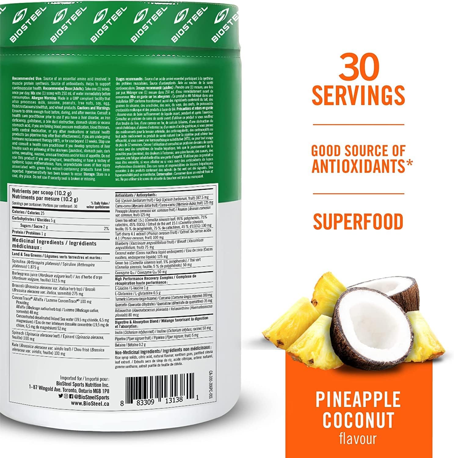 BIOSTEEL- Sports Greens, Pineapple Coconut, 12 x 10g
