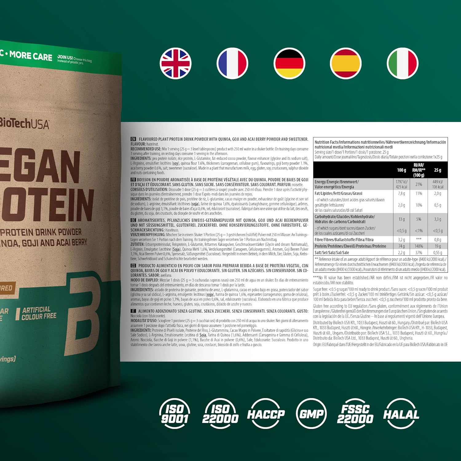 BioTechUSA Vegan Protein | Rice and Pea-Based Shake with Superfoods and Amino Acids | Sugar, Lactose, and Gluten-Free, 2 kg, Hazelnut