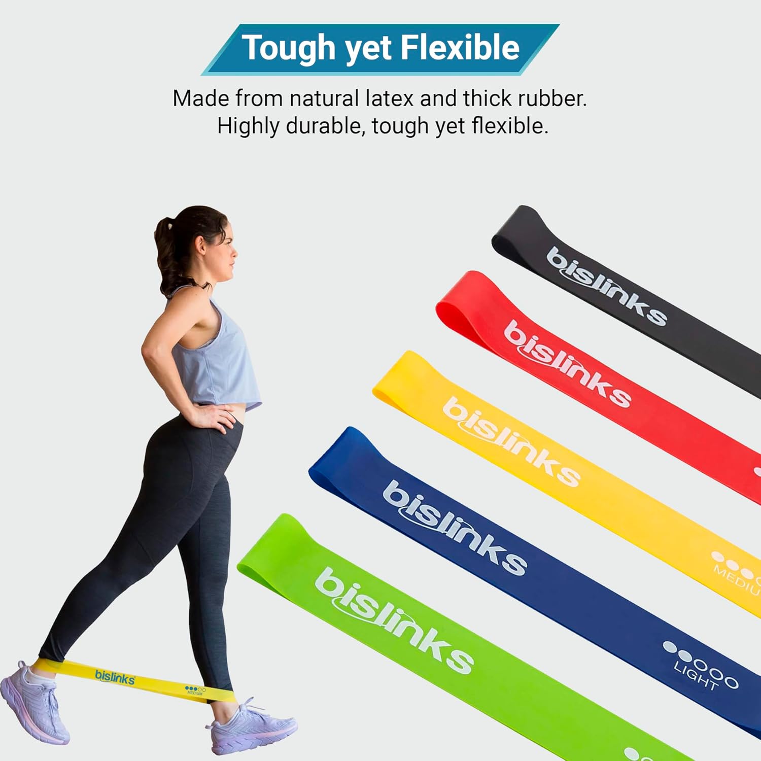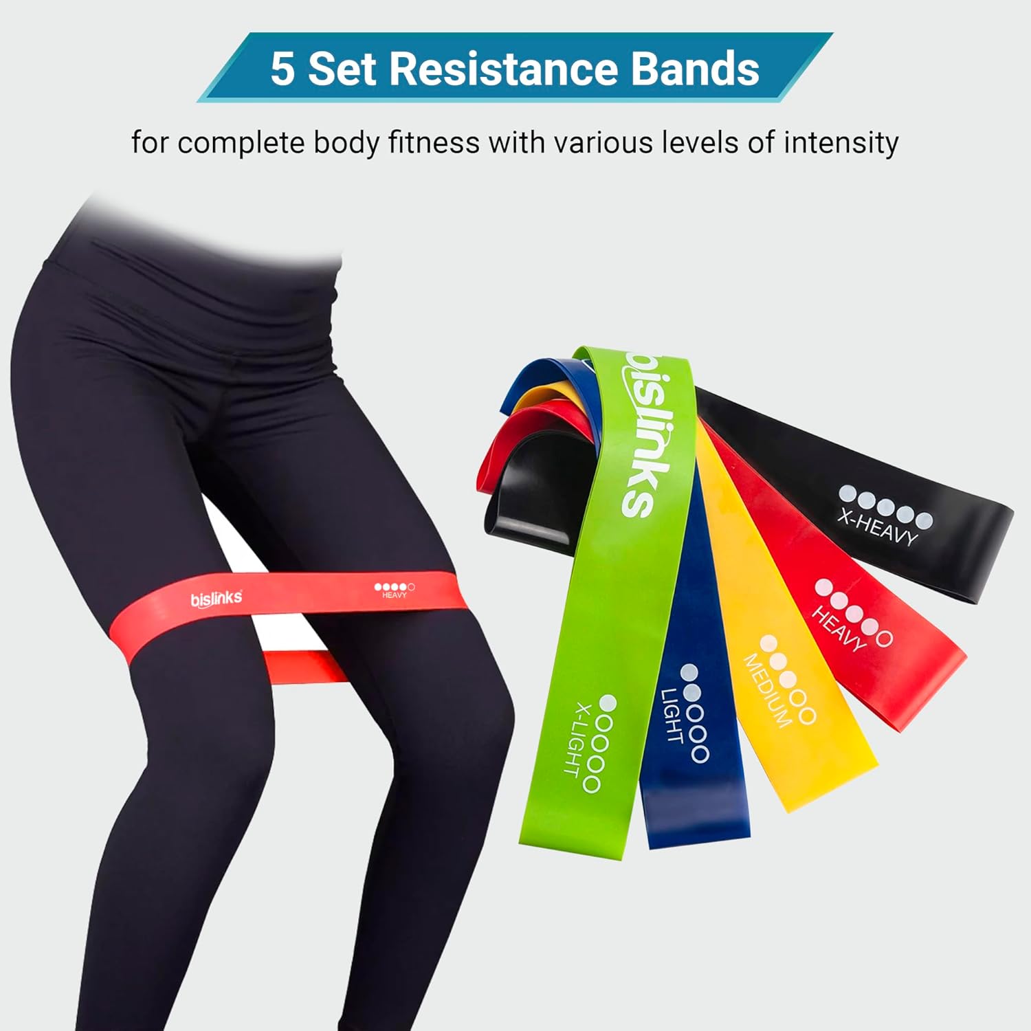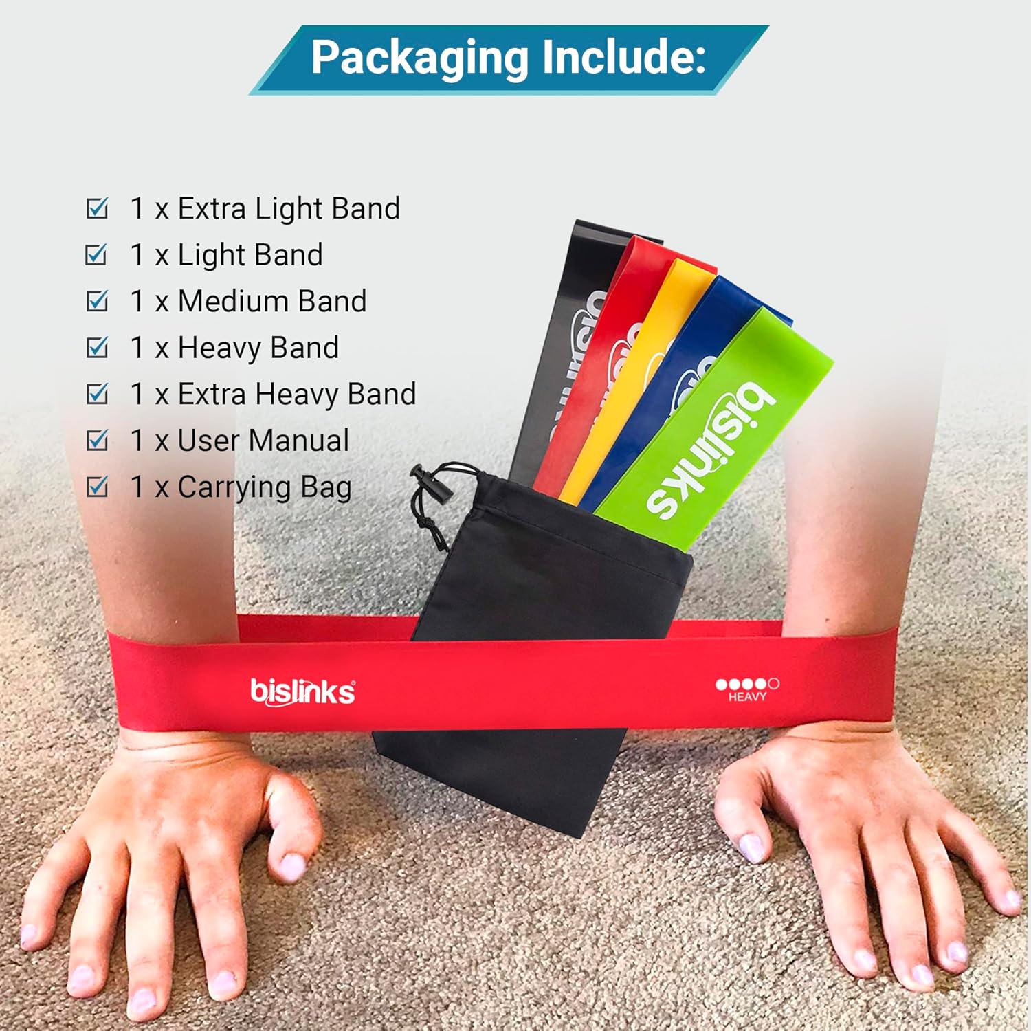 BisLinks® Resistance Bands Set | 5x Different Strengths, Comes With Carrying Case, Bright Colours & Durable, Great Exercise Equipment For Home Use | 5 Pieces