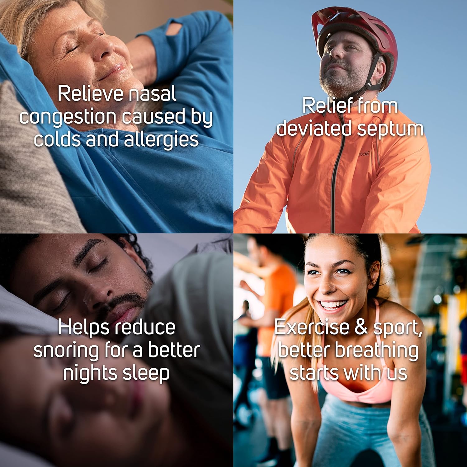 Breathe Right instantly relieves nasal congestion that can arise from colds, allergies & a deviated septum and is clinically proven to help reduce snoring for a better night’s sleep.