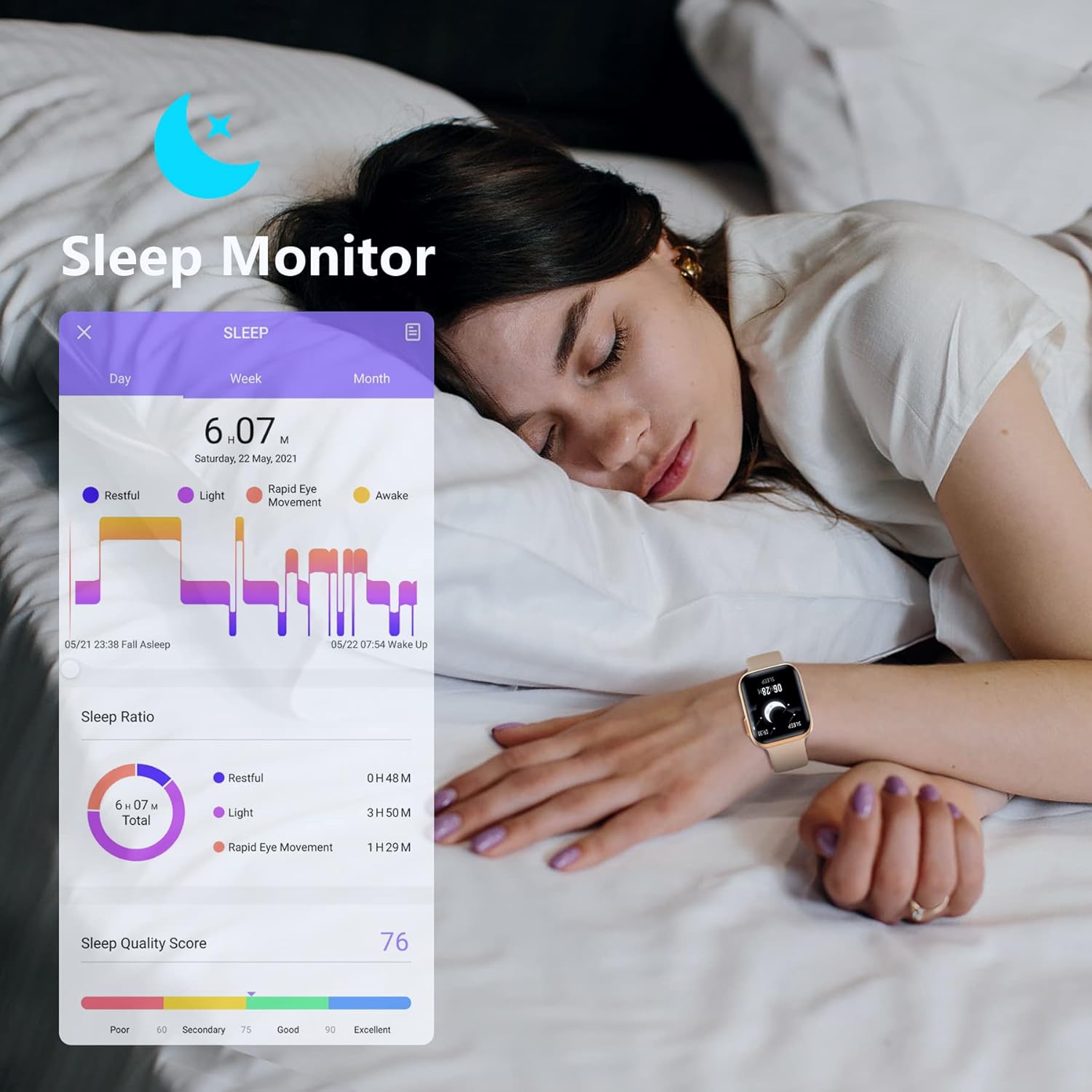 【Sleep Monitor】Automatic sleep tracking (Deep Sleep, Light Sleep, REM, and Awake) at night and provide a comprehensive analysis of your sleep quality, helping you establish a regular bedtime routine and keep track of your sleep trends night after night. So you could set and achieve your personal sleep goals