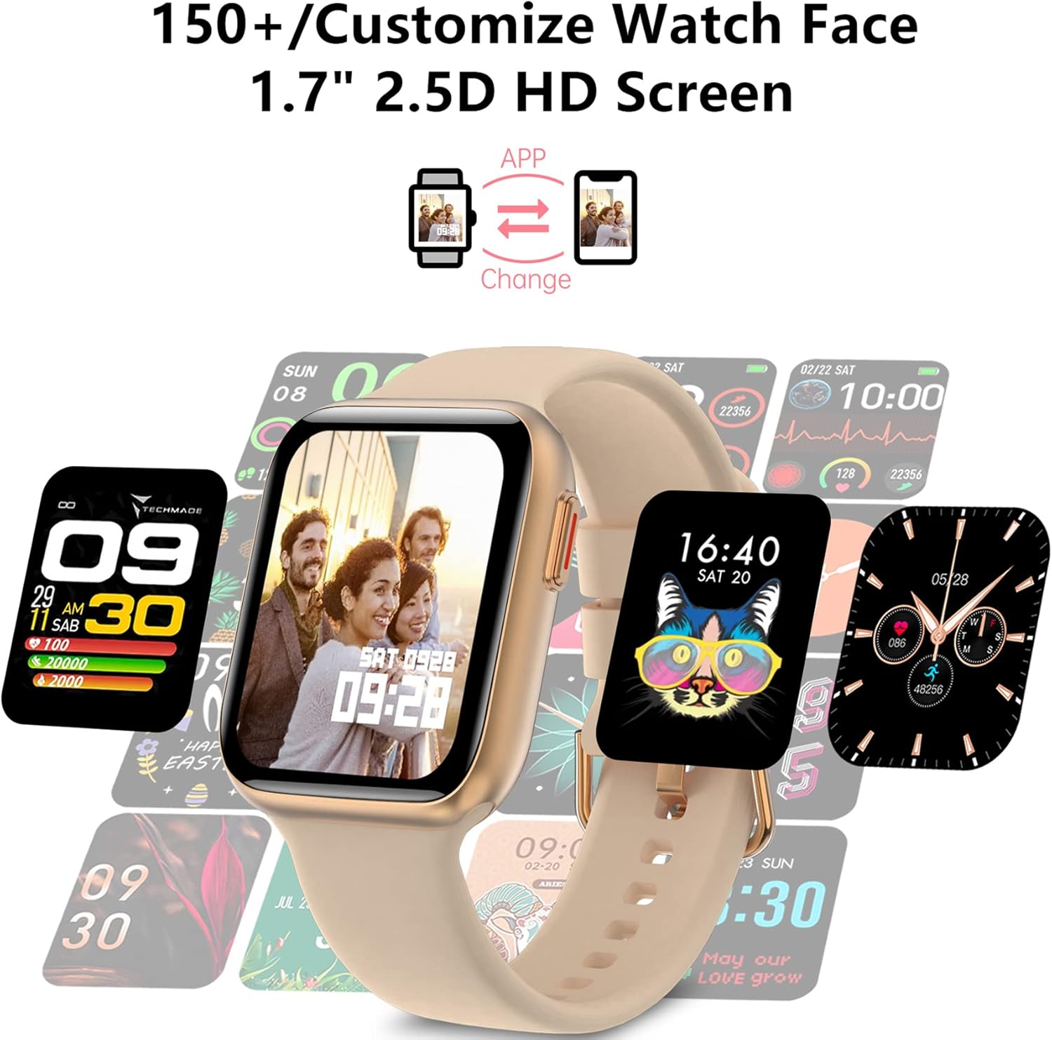 BRIBEJAT BT8 Smart Watch for Women (Dial/Answer Call) 1.7” 2.5D Screen Fitness Tracker Pedometer SpO2/Heart Rate/Sleep Monitor Compatible with iPhone Samsung Android Phone, Rose Gold