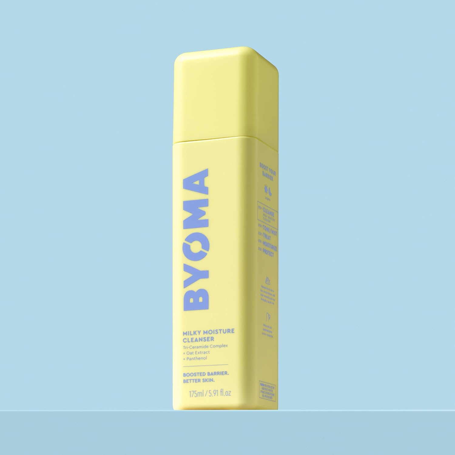 This ultra-soothing cleanser gently conditions and cleanses dry, sensitive skin for a fresh, glowing complexion. Enriched with our Tri-Ceramide Complex, the gentle milky formula is designed to dissolve daily buildup including SPF, oil and makeup to ensure skin feels soft and never stripped. This cleanser combines a host of hydrating heroes, including Oat Extract and Panthenol to ease inflammation and nourish skin for hydrated, bouncy results and a stronger skin barrier. Dermatologist tested and approved, non-comodogenic, alcohol and fragrance-free, vegan and cruelty free How to Apply: Massage into dry skin in slow, circular motions. Add water to emulsify and rinse thoroughly. Use AM + PM as your second step cleanse. Follow with your preferred Byoma serums + moisturizer. How to Recycle: Unscrew pump, rinse out bottle and recycle in normal household plastic waste.