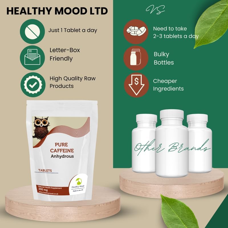 Caffeine: Each tablet contains 200mg of caffeine, a natural stimulant known for its energy-boosting properties.