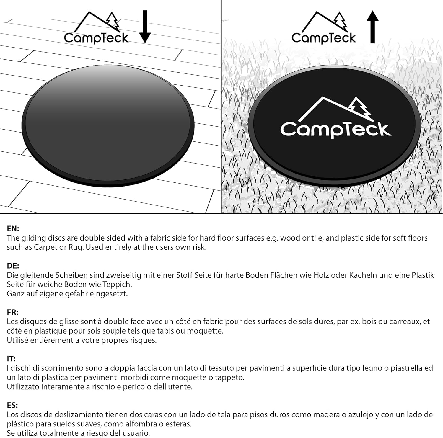 The CampTeck core slider discs are your fully versatile and portable piece of accessory to get a full body workout. They can be used to target all muscle groups from chest to legs These core slider workout discs are double sided, can use on both carpet floors and hard floors such as wood, ceramic or tiles. Our exercise core sliders are very light and compact that you can pack them in any bag and take them wherever you travel. Take them to the gym or if it’s more time efficient and convenient, stay at home and still get a great home workout in Use these exercise gliding discs for gym, core strengthening, athletic conditioning, physical therapy, yoga, dance, balance training and more.