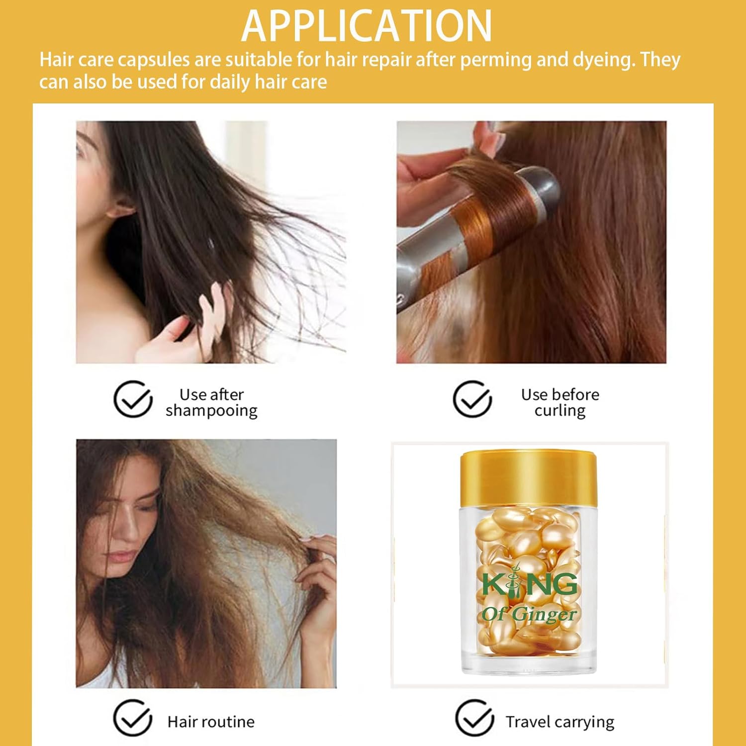 Capsules for Hair Care,30PCS Ginger Hair Growth Oil Capsule,Hair Vitamin Serum Capsule,Deep Moisturizing, Nourishing, Prevent Hair Loss and Enhance Shine, Improves Dryness and Frizz