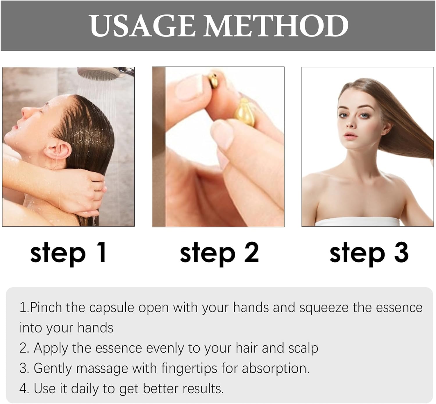 【Repairs Damaged Hair】Hair care capsules help repair damaged hair by improving dryness and frizz. It hair by penetrating deep into the hair follicles, leaving the hair healthy and looking great.