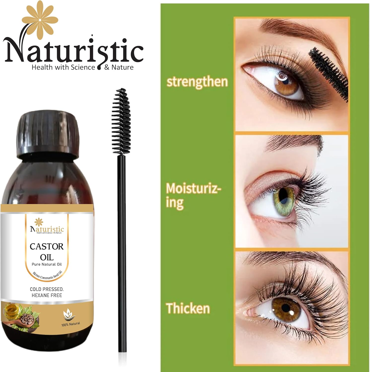 Castor Oil Pure For Hair Growth & Strenght, Help In Thickening eyelashes and Eyebrows Volume, Best Oil For Dry Damaged Hair, Natural Castor Oil for Eyelashes 100ml.