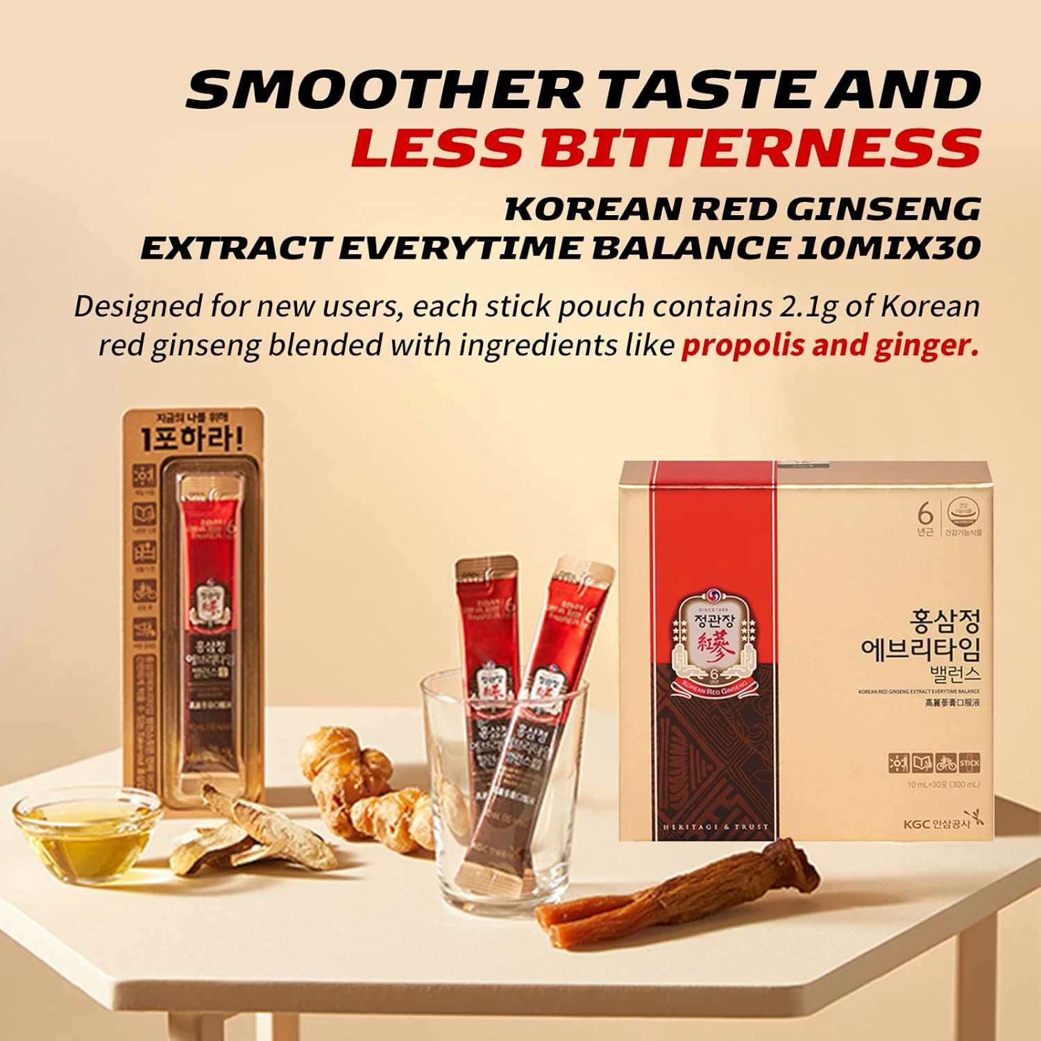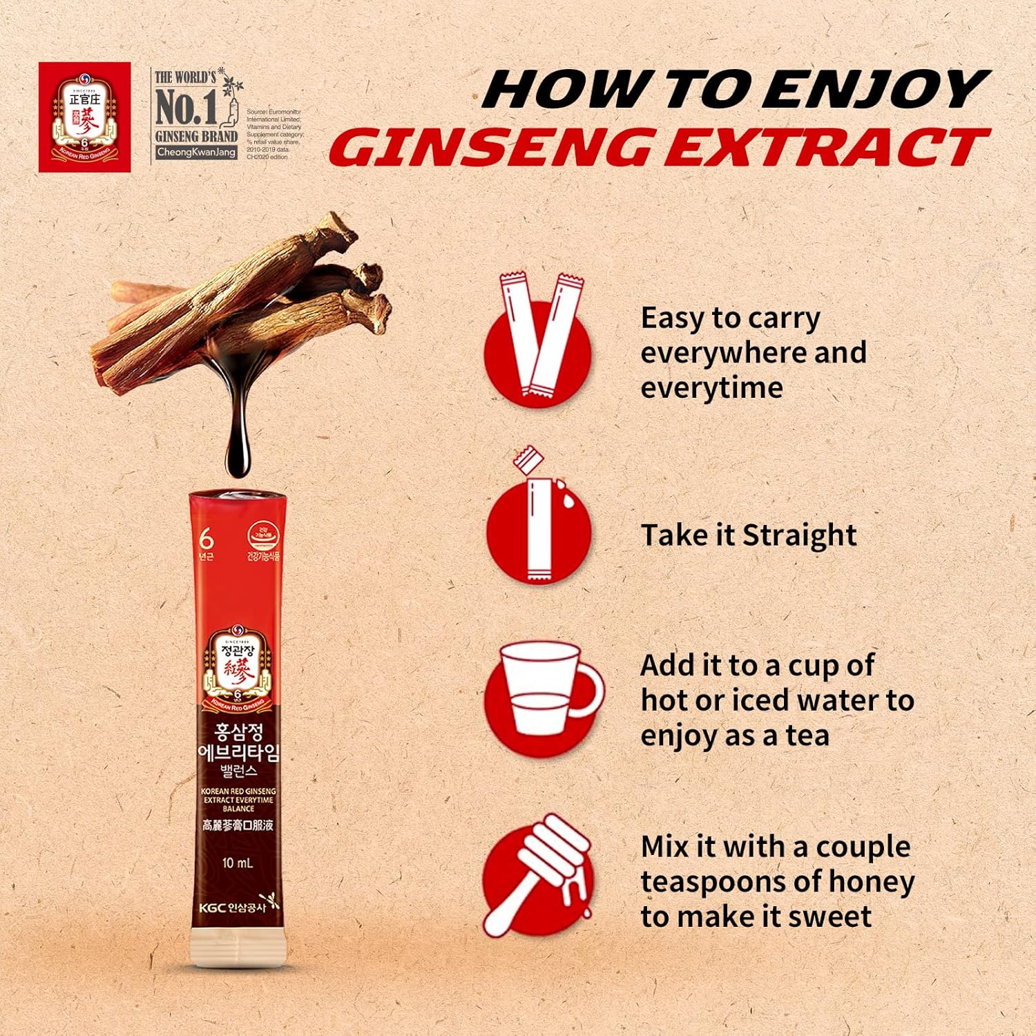 CheongKwanJang 6-Year Korean Red Ginseng Everytime Balance, Blood Circulation, Improve Memory, Natural Energy Supplements, Enhance Immunity, Alleviate Fatigue, 10mlx30