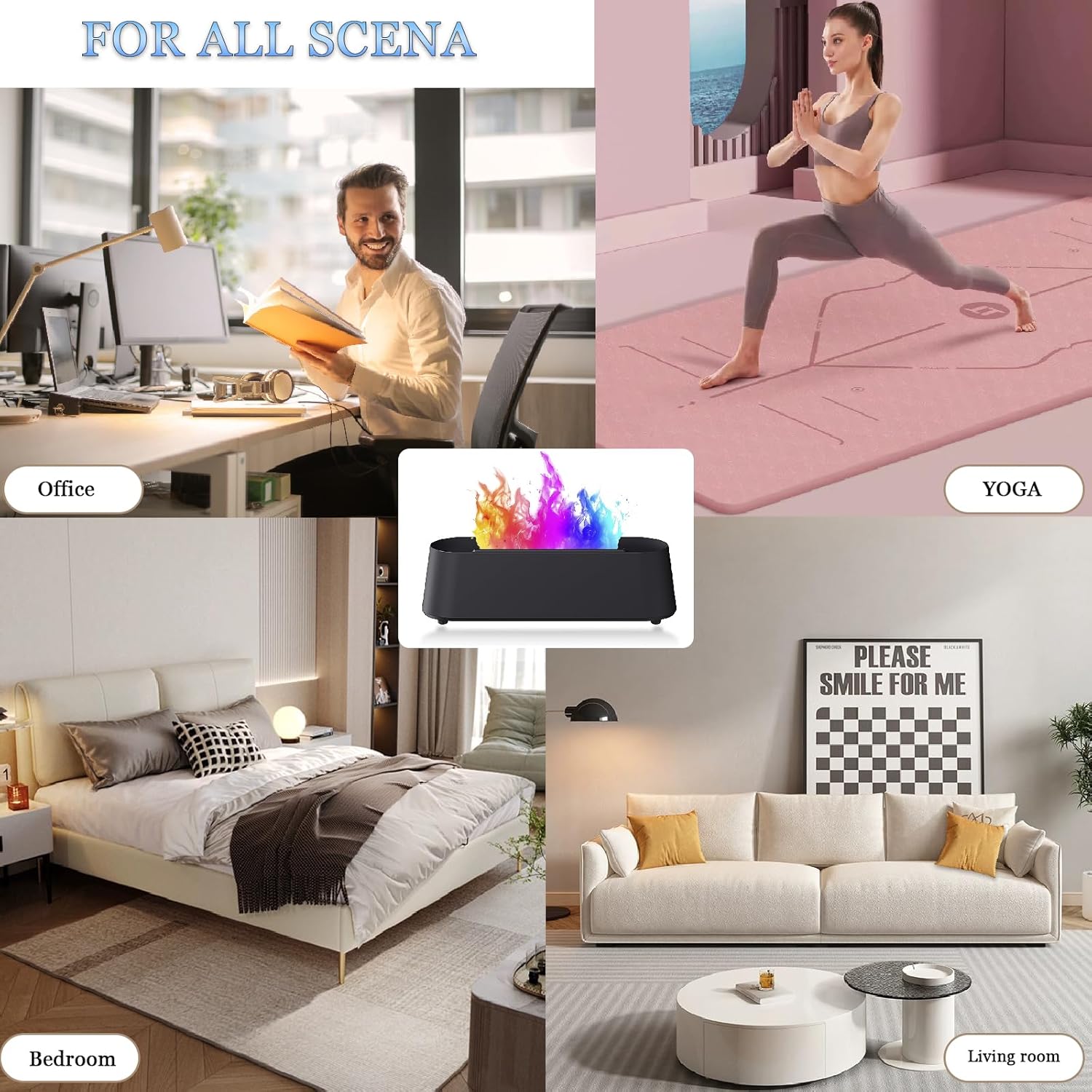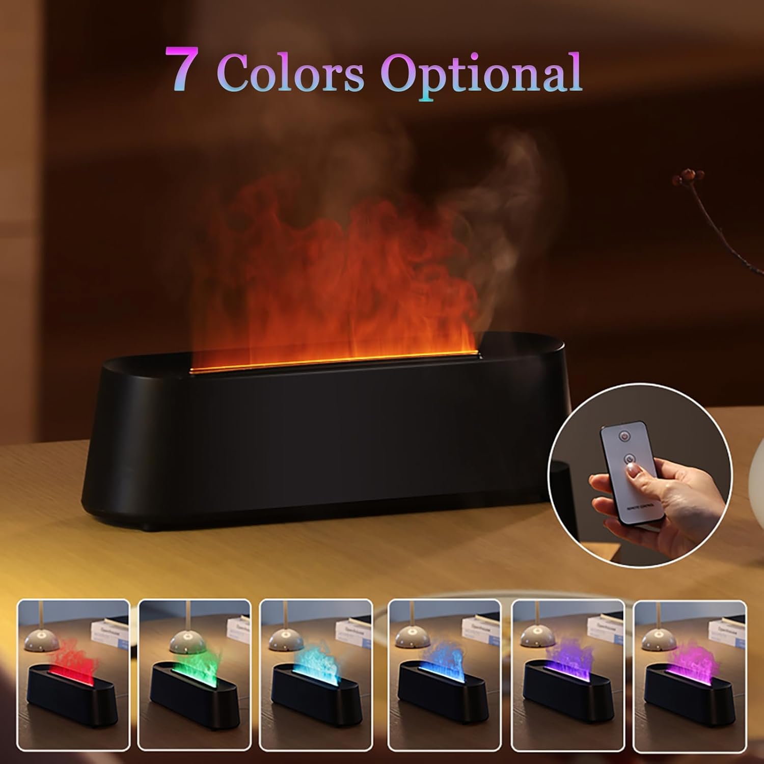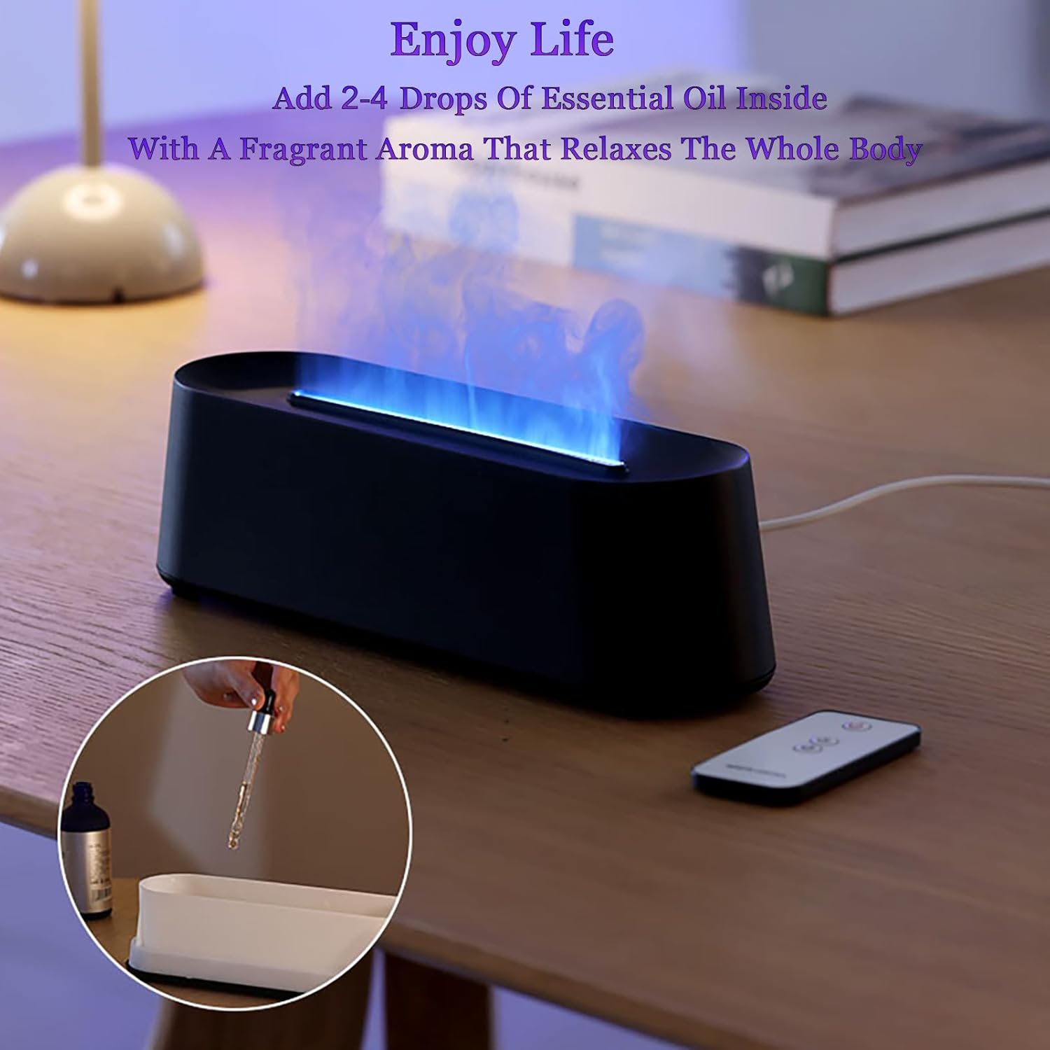 7 Colors Flame & Remote Control & Timeable】: diffuser use our fragrance diffuser, relax, soothe, calm, fully enjoy your life,oil diffuser carefully crafted with high-quality PP material, button electroplating process, use smart LED light combination with flame humidification effect , flame diffuser to create a realistic fire atmosphere