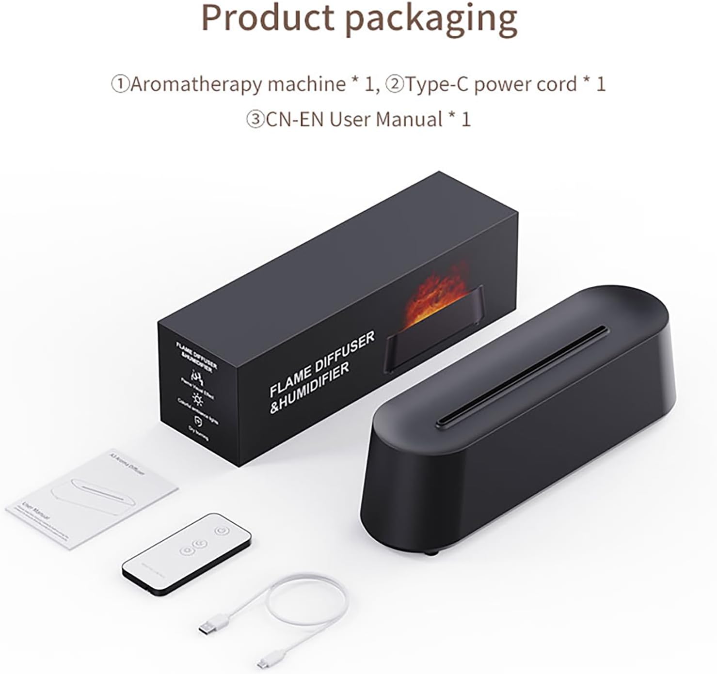 【Instructions for using diffuser】:After flame diffuser being powered on, oil diffuser the ambient light changes color in sequence (red, green, blue), and lights up for one second each; Press the power button once to turn on atomization and simultaneously turn on the flame atmosphere lamp. Short press the timer button to start the timed operation of 2/4/6H in sequence