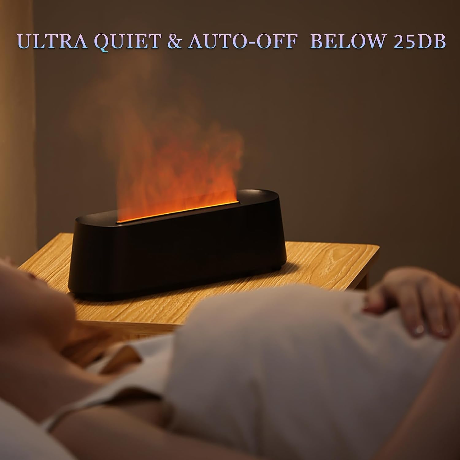 【Ultra large capacity 300ML flame oil diffuser】: Upgraded Flame Fire Diffuser Humidifier size of 10.7in * 3.2in * 3.1in, diffuser build in 7 color changing LED light, collections light and miss to create a more realistic flame effect, flame diffuser adding a relaxed, something, call atmosphere to your home, office, spa or more.
