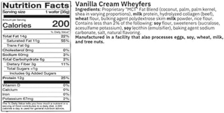 Low in carbs – only 4-6 net grams of carbohydrates per KETO wheyfer. Very low in sugar – only 1-2 grams of sugar per KETO wheyfer. The combination of low carb/low sugar, high-quality protein, and high-quality fat elicits a very minimal glycemic response. Perfect for snacks, dieting, pre and post-exercise, desserts and anytime you’re looking for something good for you that tastes great, whether you’re on a KETO diet or not. High in protein – This unique protein blend offers 9-11 grams of highly digestible protein per serving. Including 5 grams of collagen protein. Recent research on collagen protein shows many benefits including healthy joints, bones, tendons, hair, skin, nails, muscles and more. No sugar alcohols – you’ll never feel bloated after eating a KETO wheyfer. Proprietary fat blend consisting of coconut and palm oil. Both coconut and palm oil are extremely high in MCT’s (medium-chain triglycerides). MCT’s are easily digested and provide instant energy to support metabolism and fuel. Light, sweet, and crunchy with no after taste. Unlike other KETO and low carb snacks that tend to be Dry and bland, the KETO wheyfer is the perfect blend of cream and crunch!.