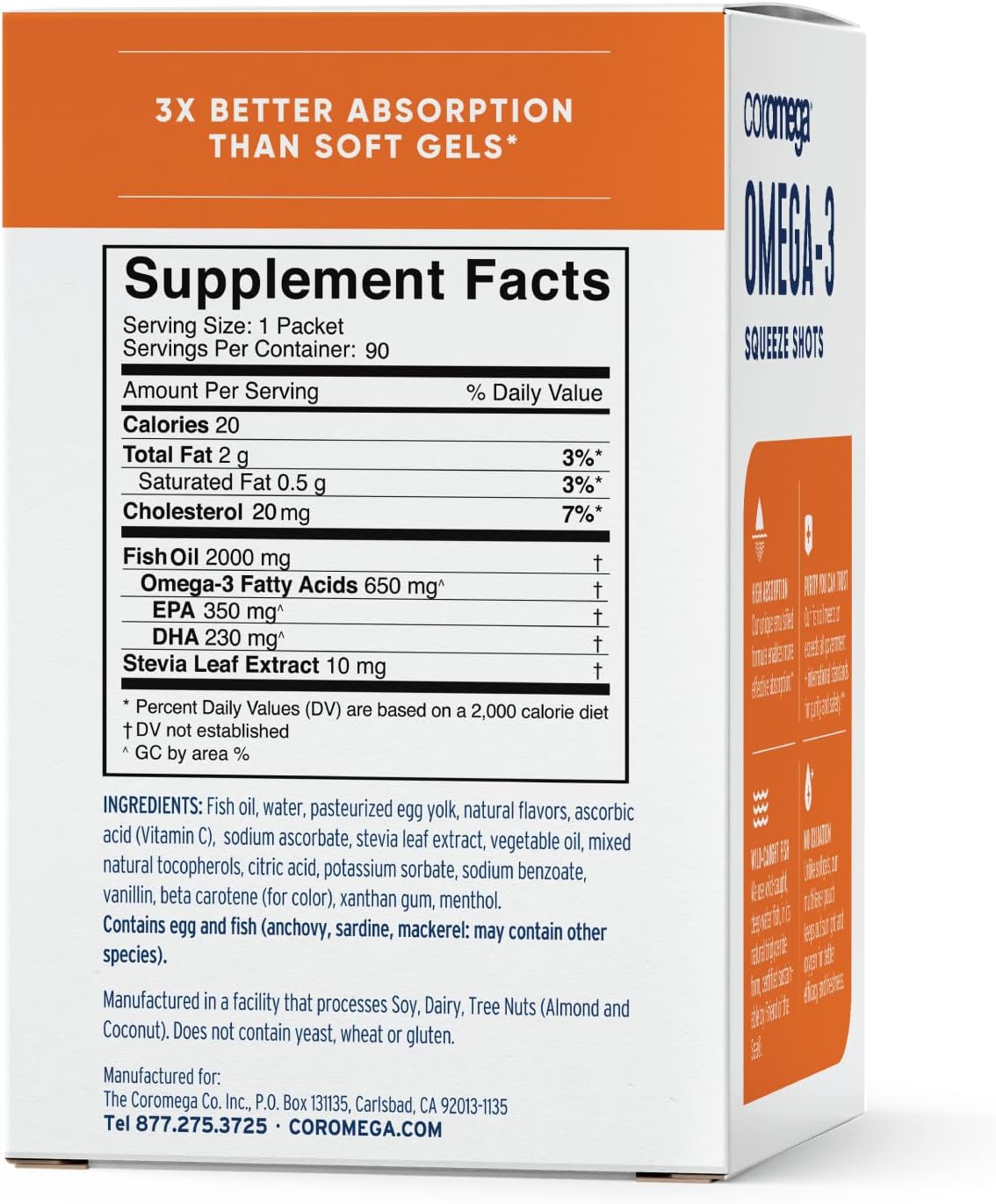 Coromega Omega-3 Supplement, Orange Flavor, Squeeze Packets, 90-Count Box by Coromega