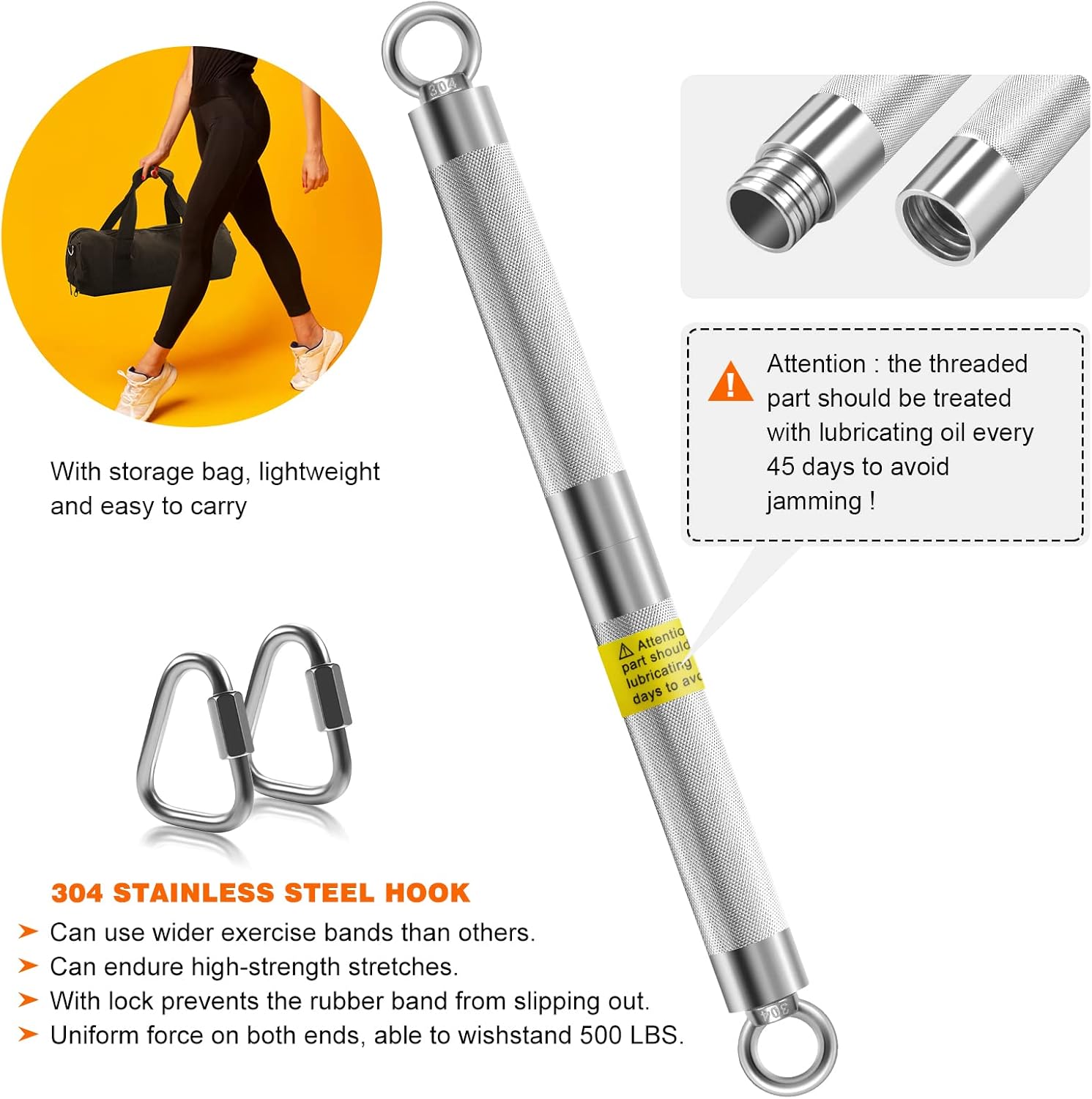 DASKING Resistance Bands Bar, Detachable Exercise Bar with Triangle Hooks – Portable Fitness Workout Bars Kit for Pilates, Yoga, Powerlifting, Strength Training – Home Gym Sports System Equipment