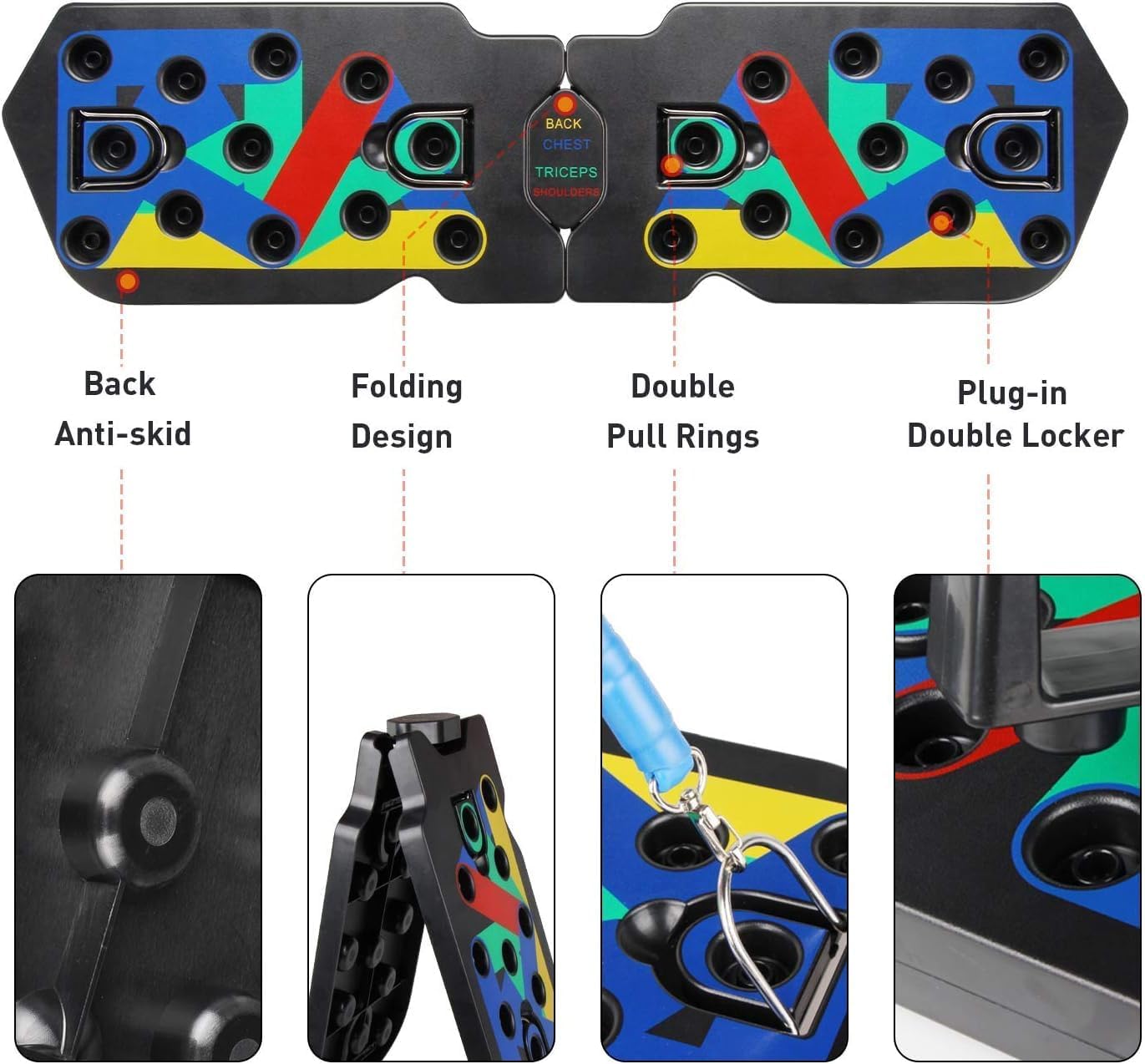 【Package Included】1* Foldable Body Building Pushup Stand, 2 * Non-slip Rubber Push Ups Handles, 2 Fitness Bands(15lbs), 16 * Anti-slip Round Stickers, 1* Carry Bag, 1 User Manual and 100% Customer Service.