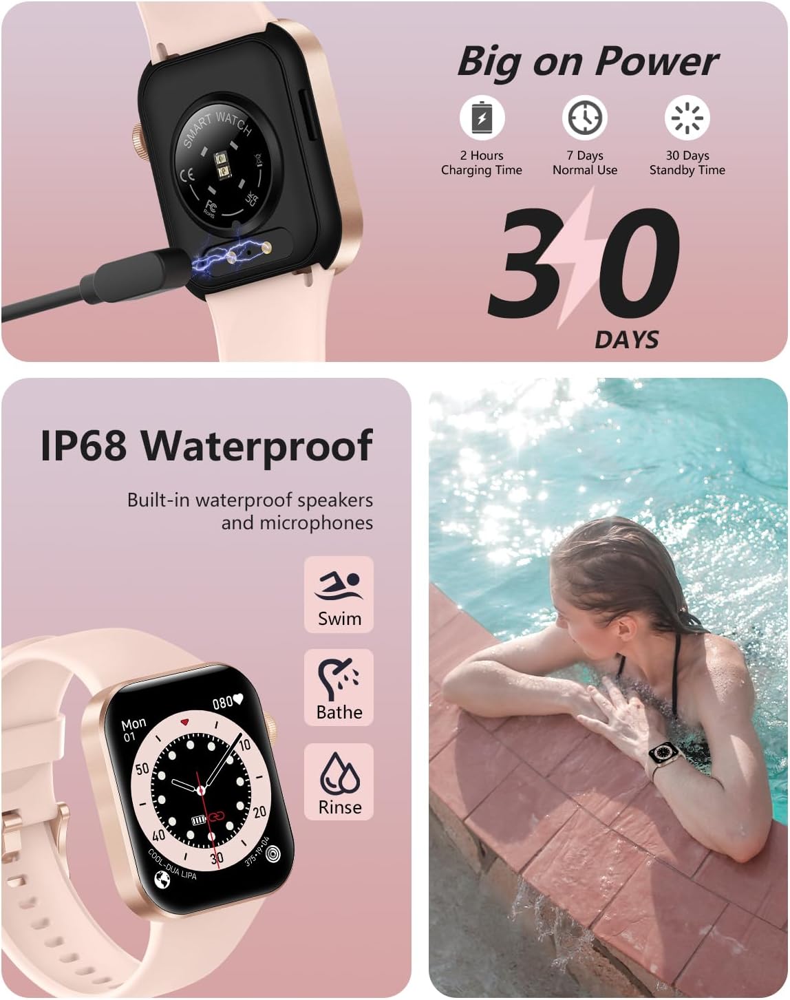 🔵【IP68 Waterproof Watch】This fitness watch comes with IP68 and 5 ATM ratings for water resistance, and has withstood a staggering 200 water pressure cycles, so you can even wear it while using any of the 10+ water sports modes on the watch.