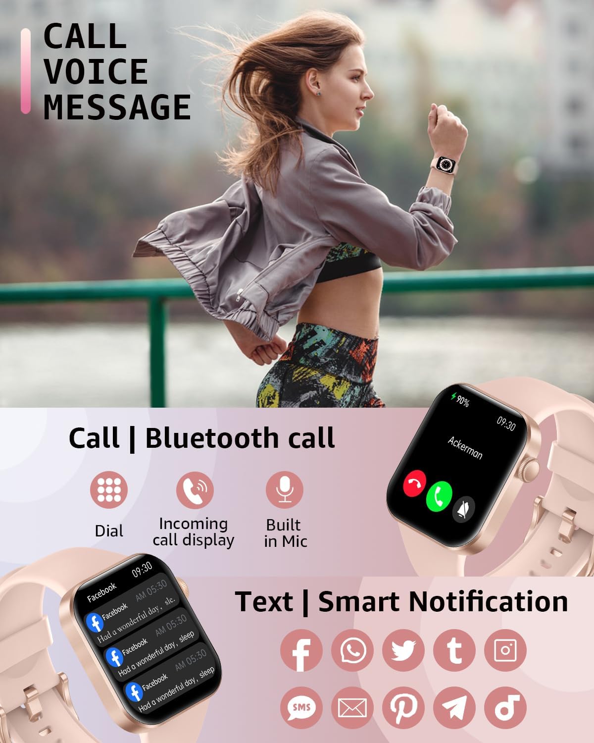 🔵【Bluetooth Voice Calls】Stay connected with friends, colleagues, and loved ones right on your wrist. Phone calls can be answered on the P2 smart watch with only a tap. Whether you are working or doing exercise, you can raise your hand to answer phone calls, so you don’t miss anything important.