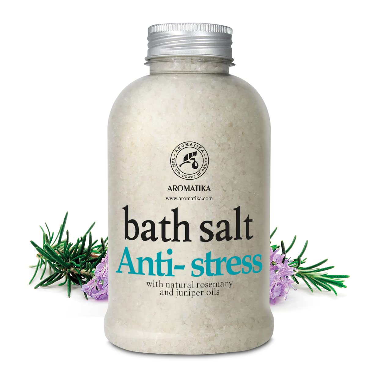 De-Stress Bath Salt 600g w/Natural Rosemary & Juniper Oils – Natural Bath Sea Salts – Best for Good Sleep – Relaxing – Calming – Body Care – Beauty – Aromatherapy