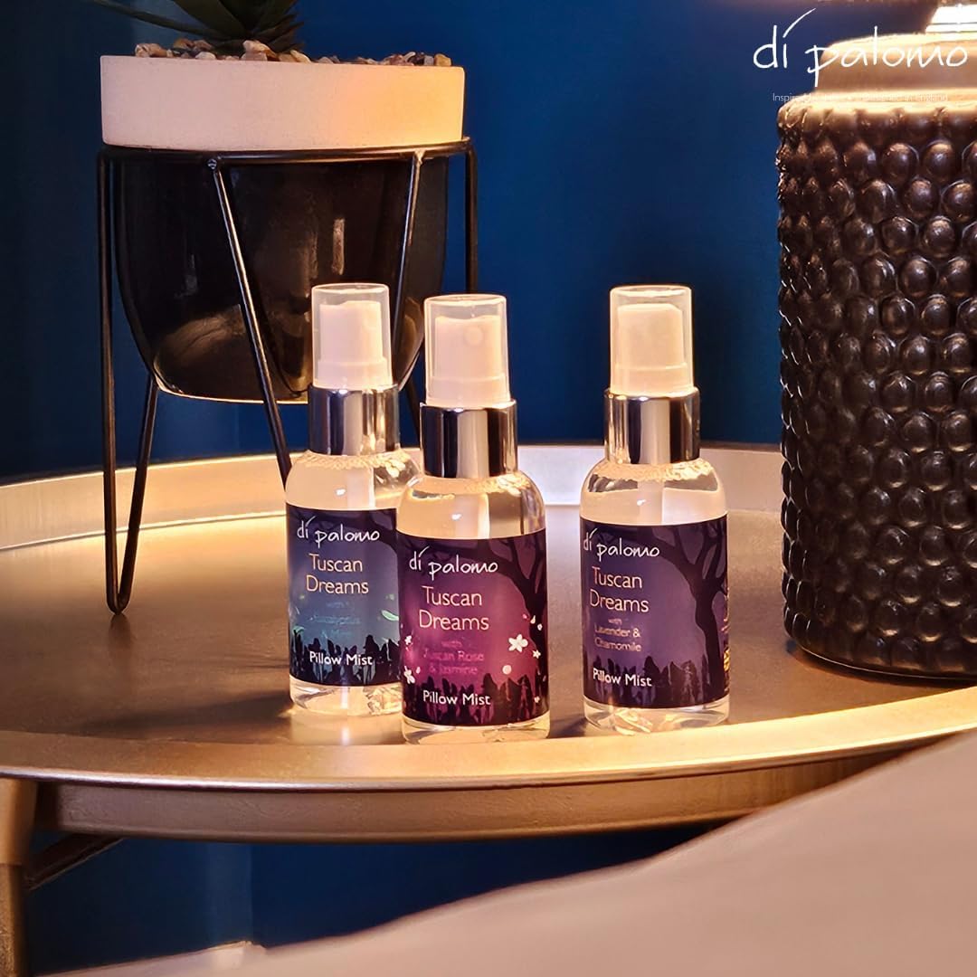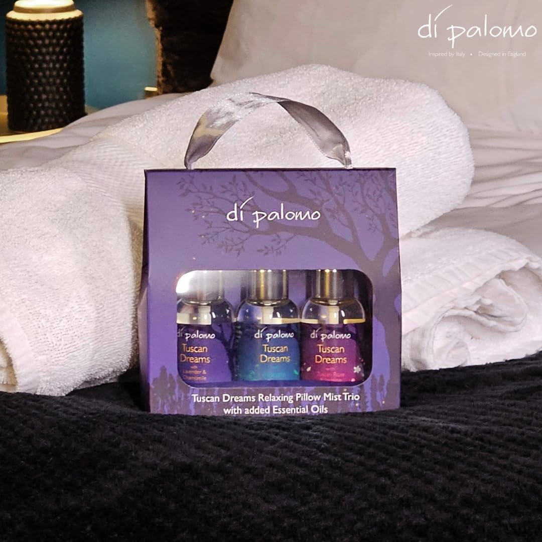 Di Palomo Vegan Tuscan Dreams Pillow Mist Trio Collection. Deep Sleep Pillow Spray Set. Chamomile & Lavender Essential Oils Pillow & Room Spray. Anxiety Relief & Sleep Aid, Vegan Gifts for Women.