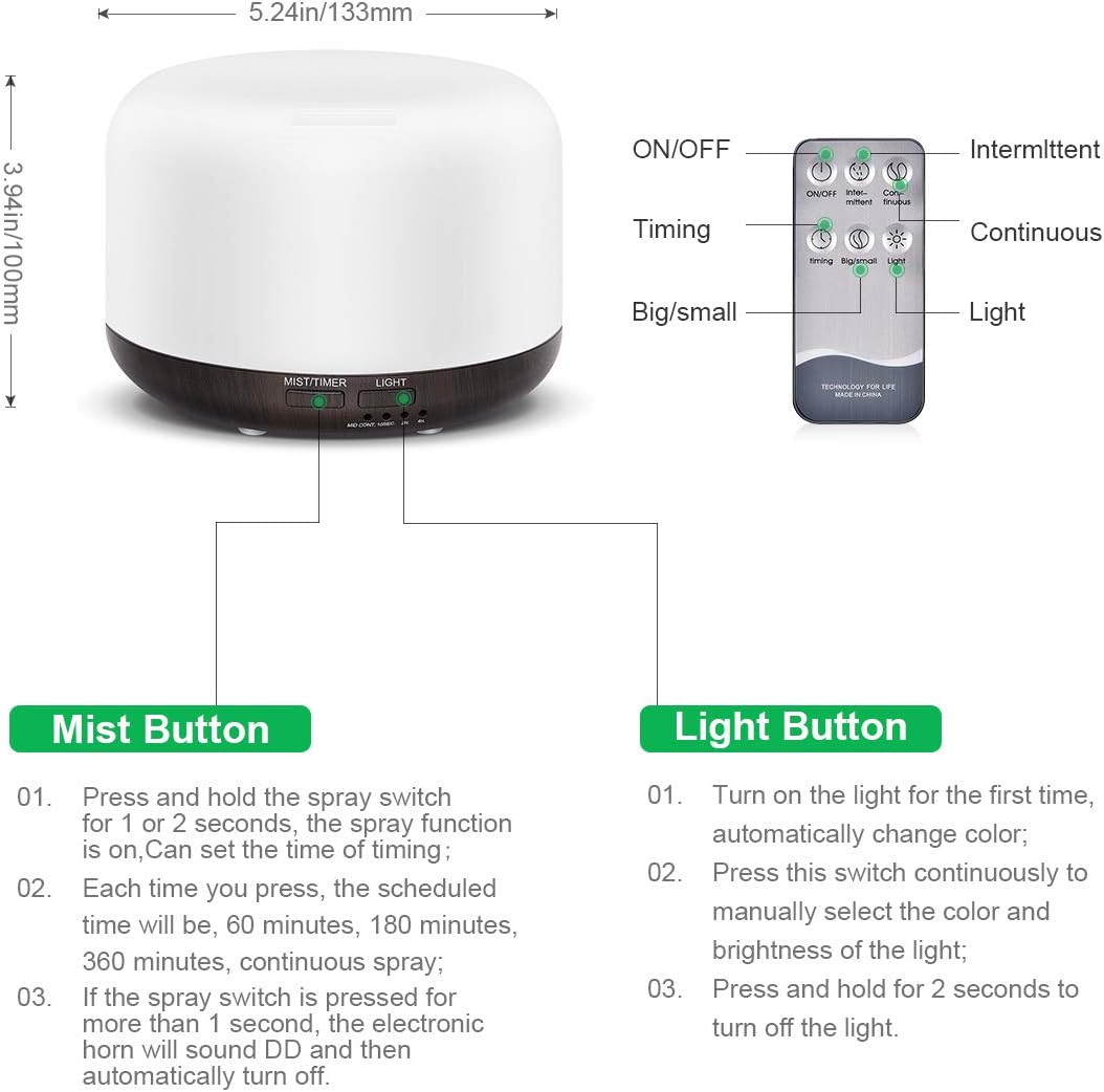 REMOTE CONTROL/SILENT OPERATION: You need a diffuser with a remote control, which can be used to easily control the diffuser. The quiet operation mode will not disturb your work/rest, with 4 timers (duration/10 second interval/2H,/4H), 2 MIST modes, to meet your needs for different time and amount of atomization