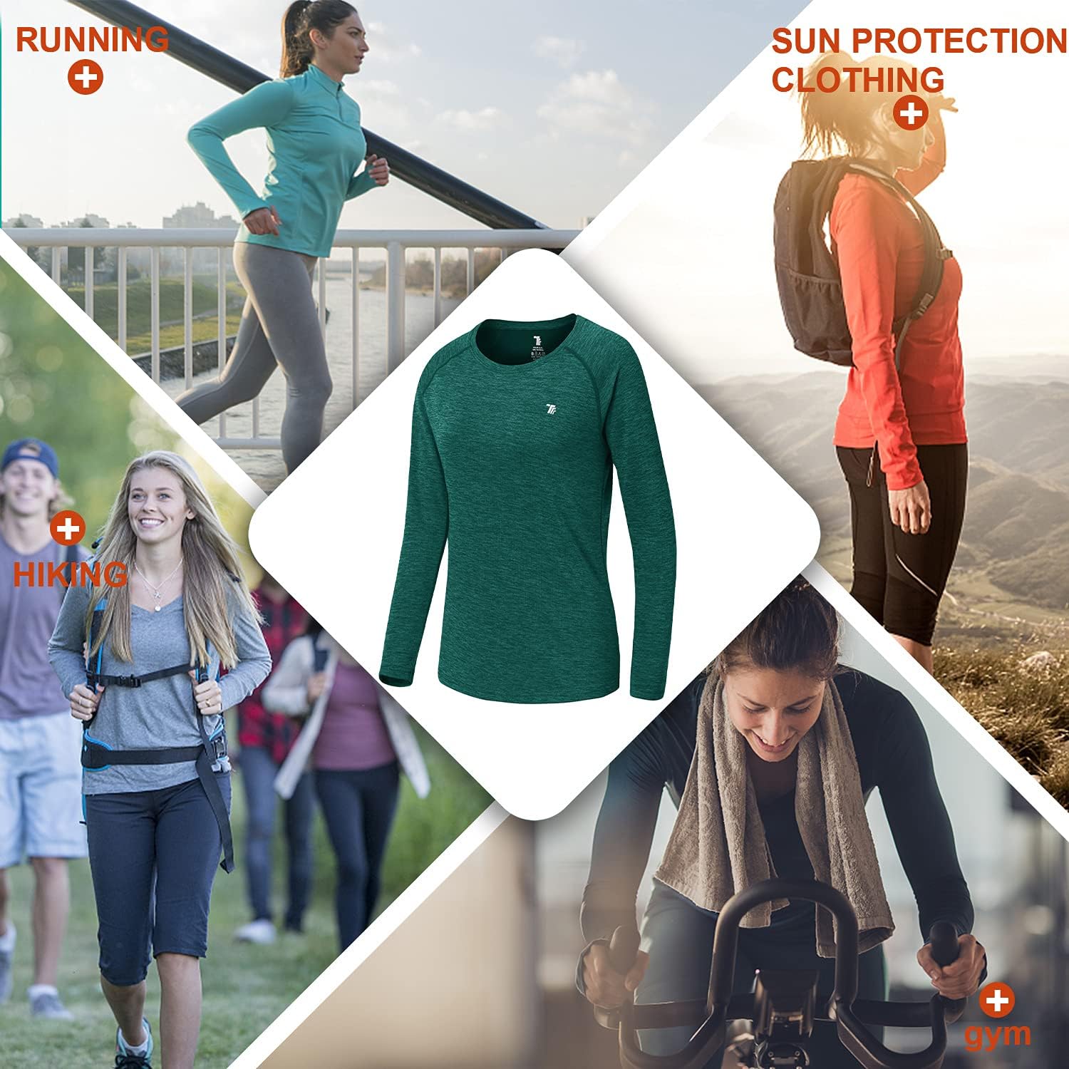 donhobo Women’s Long Sleeve Sports Running Tops Shirts,UPF 50+ Sun Protect Breathable Quick-Dry Fitness T-Shirt Tops for Workout Gym Training Yoga Pilates