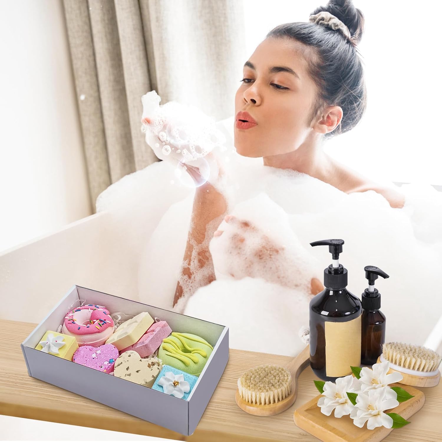 🛁SPA AROMATHERAPY AT HOME – After a tiring day, treat yourself to a relaxing and soothing bath sets, each bath bombs allows you to enjoy a soothing and spa-quality luxury experience with a natural and organic colorful aromatherapy bath. Enjoy a romantic aromatic bath that will help release the stresses of the day. All essential oils provide a longer-lasting fragrance effect and offer excellent aromatherapy benefits, relaxing your body and moisturizing your skin.