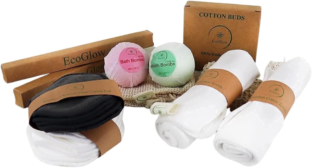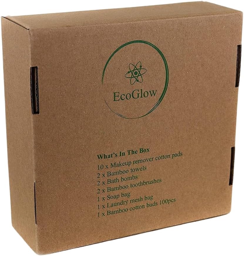 What’s in the box? 10 x Makeup remover cotton pads 2x Bamboo towels 2x Bath bombs 2x Bamboo toothbrushes 1x Soap bag 1x Laundry mesh bag 1x Bamboo cotton buds 100pcs.Eco Gift Set, Luxury bamboo self care gift set for him or her. This is the perfect to gift to give your loved ones an EcoGlow!All of our products are eco and vegan including the packaging. Re-use the soft bamboo or cotton towels alongside the cotton wool pads time and time again, providing your skin with the best quality care every time. Relax with one of our blissful bath-bombs, with two scents to choose from. You will also receive bamboo ear buds, two bamboo toothbrushes and two wash bags with your purchase.We’re a UK based family business and are extremely passionate about saving our planet and reducing plastic waste. Please join us in our fight against climate change.