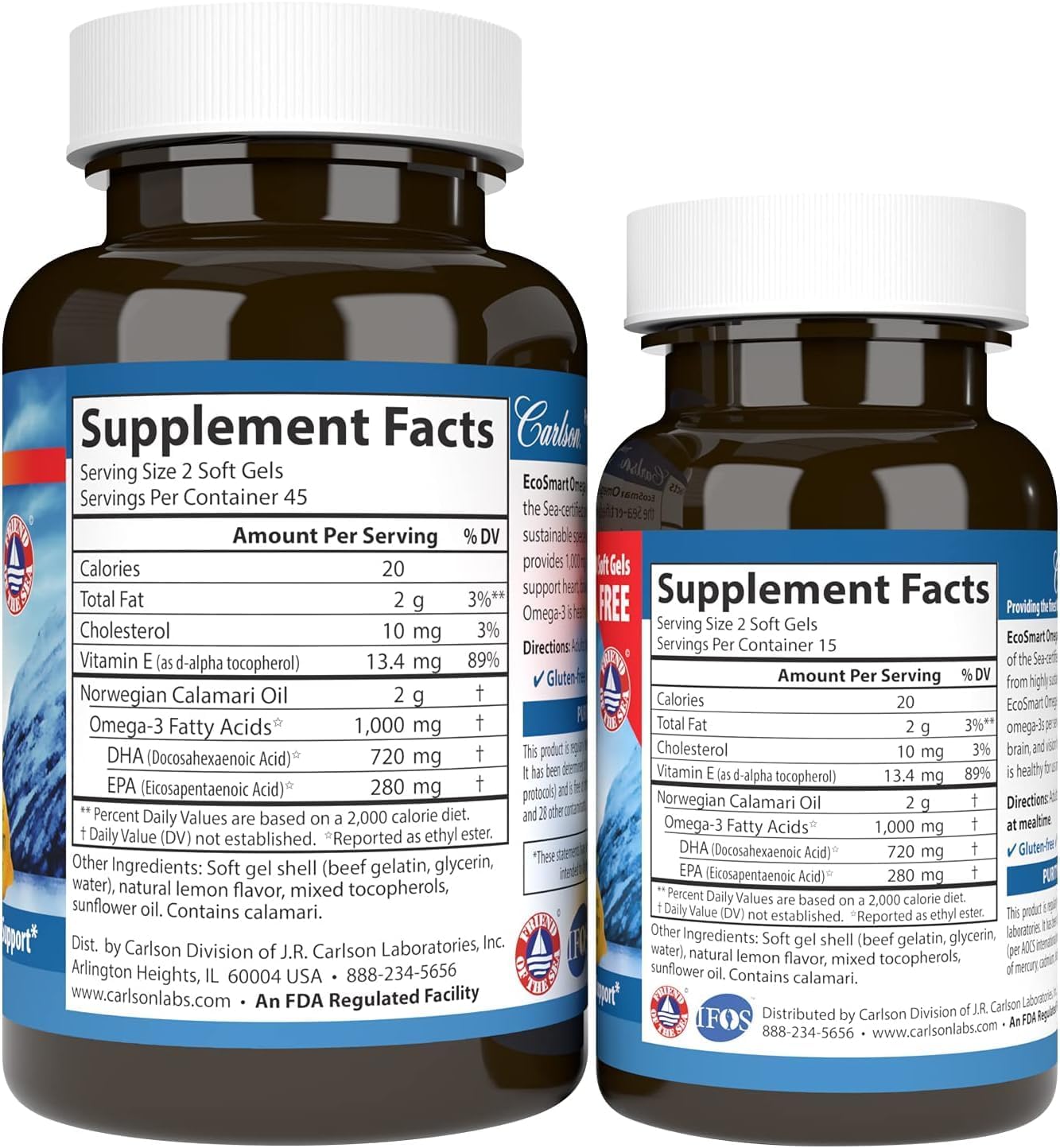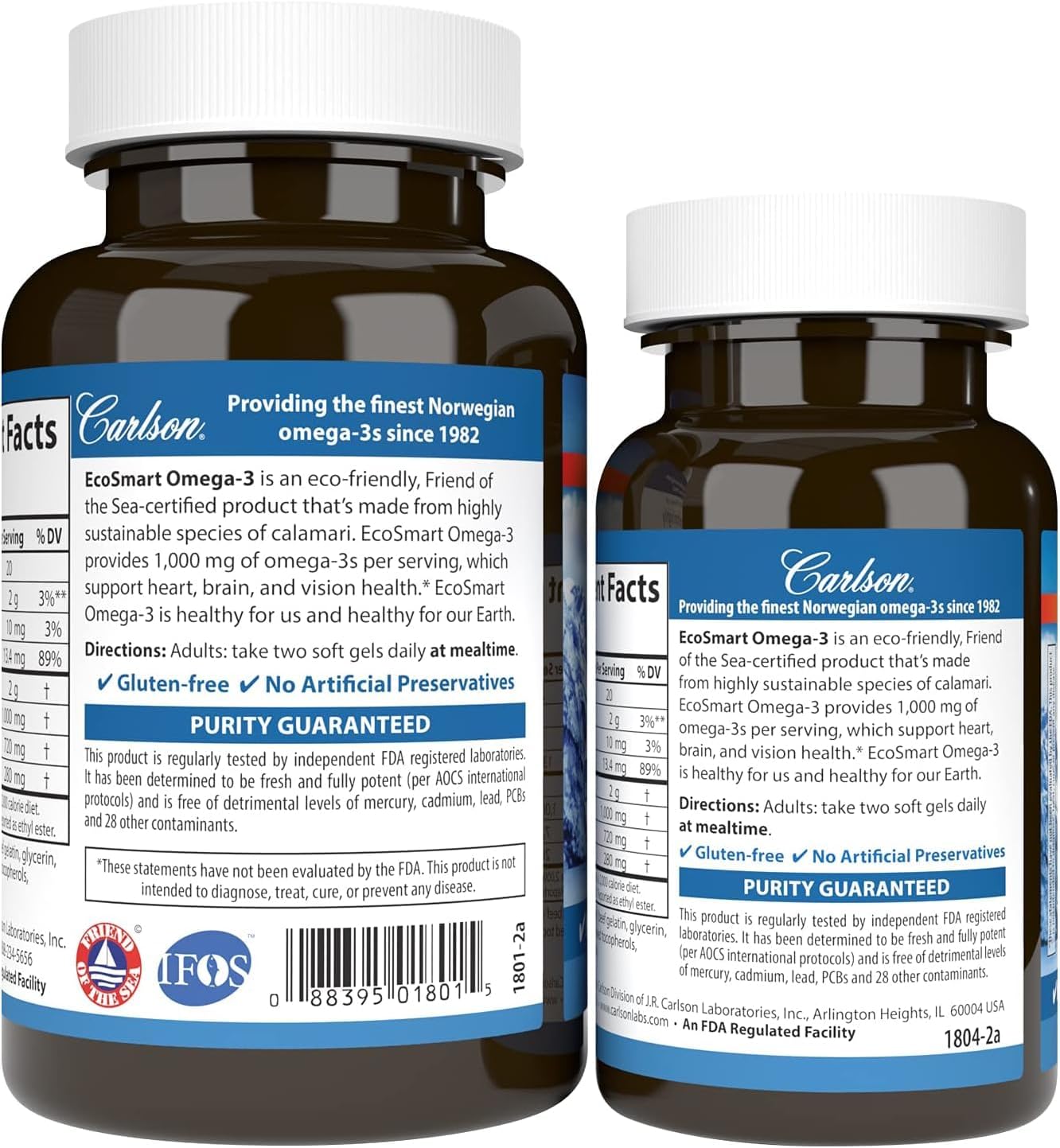 EcoSmart Omega-3, 1000 mg Omega-3s Sustainable Source, Heart Health, Brain Function & Vision Support, Lemon, 90+30 Soft gels