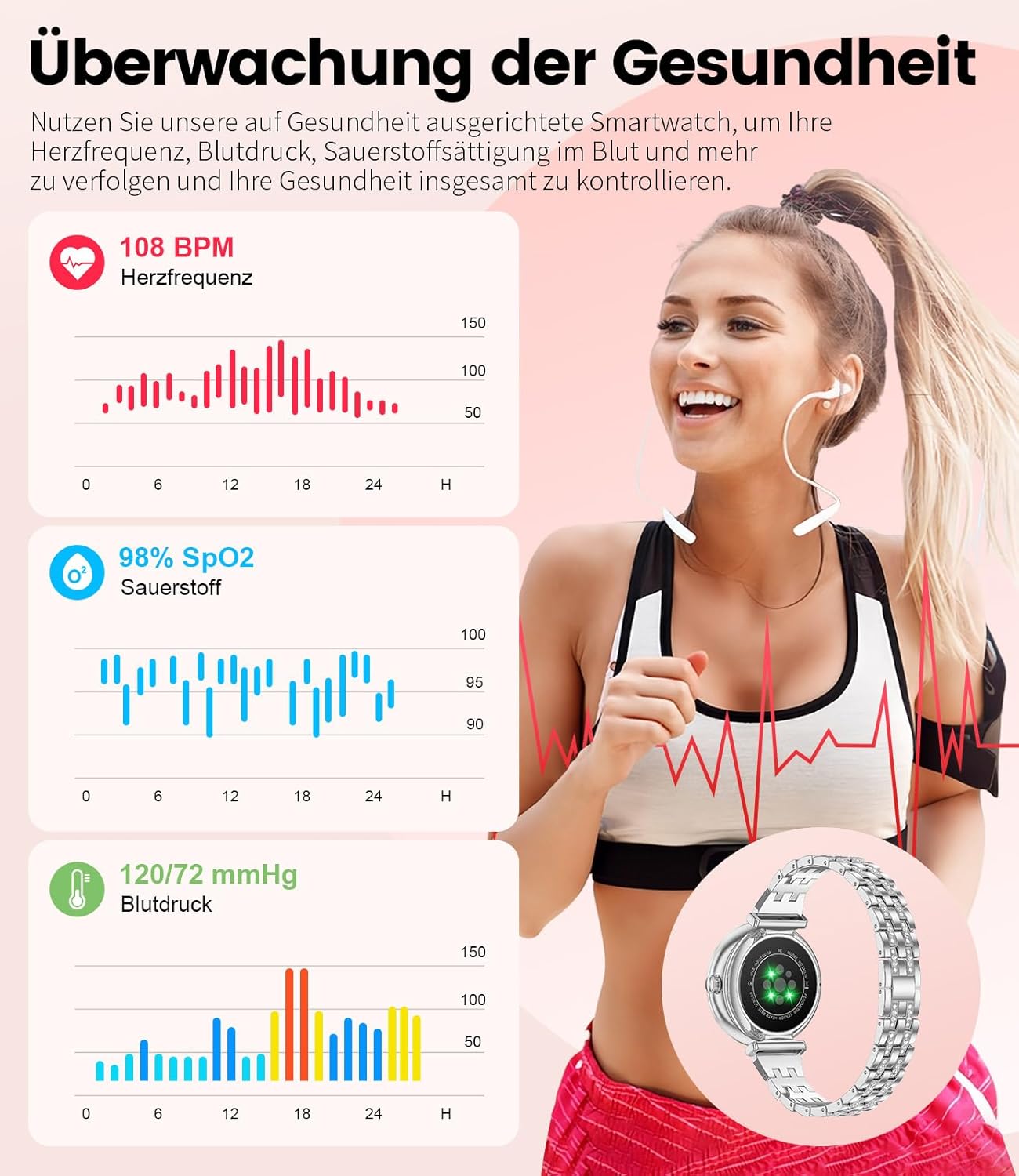 💖 【Caring for Women’s Health】This health tracker smartwatch provides 24H tracking of your heart rate, Respiratory rate, blood pressure, SpO2, and sleep quality. Additionally, it assists in accurately recording menstrual cycles and ovulation days. Whether you’re actively pursuing conception or seeking dependable contraception, it offers you the assurance to fully embrace life. Even in pregnancy, this watch continues to diligently record your health data, ensuring you maintain your optimal well-being.